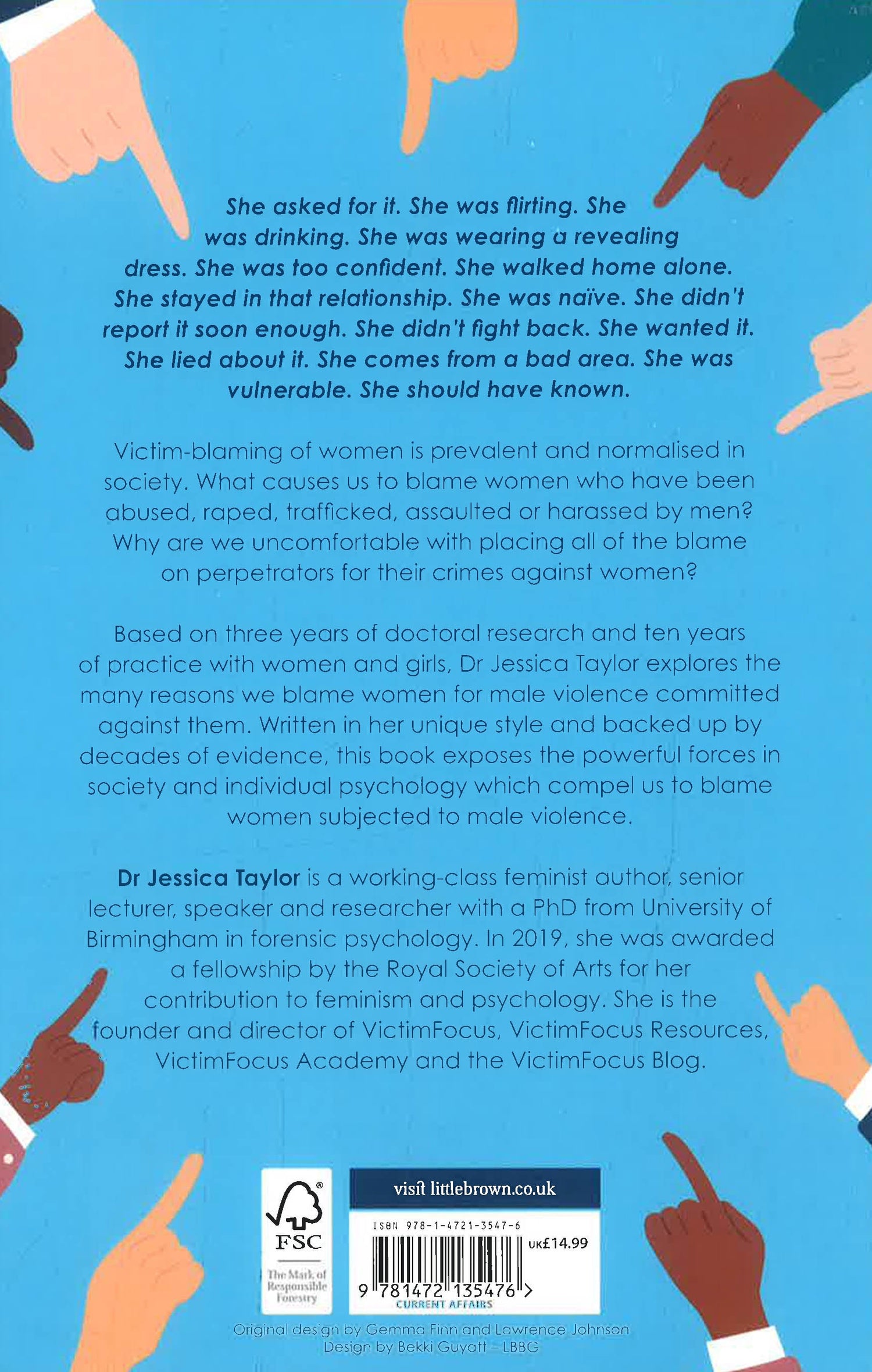 She asked for it. She was flirting. She was drinking. She was wearing a revealing dress. She was too confident. She walked home alone. She stayed in that relationship. She was naive. She didn't report soon enough. She didn't fight back. She wanted it. She lied about it. She comes from a bad area. She was vulnerable. She should have known. She should have seen it coming. She should have protected herself.The victim blaming of women is prevalent and normalised in society both in the UK, and around the world. What is it that causes us to blame women who have been abused, raped, trafficked, assaulted or harassed by men? Why are we uncomfortable with placing all of the blame on the perpetrators for their crimes against women and girls? Based on three years of doctoral research and ten years of practice with women and girls, Dr Jessica Taylor explores the many reasons we blame women for male violence committed against them. Written in her unique style and backed up by decades of evidence, this book exposes the powerful forces in society and individual psychology which compel us to blame women subjected to male violence.