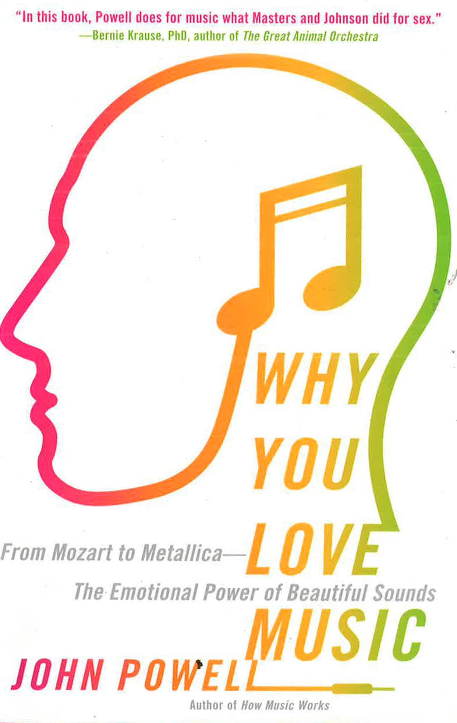 A delightful journey through the psychology and science of music, WHY YOU LOVE MUSIC is the perfect book for anyone who loves a tune.Music plays a hugely important role in our emotional, intellectual, and even physical lives. It impacts the ways we work, relax, behave, and feel. It can make us smile or cry, it helps us bond with the people around us, and it even has the power to alleviate a range of medical conditions. The songs you love (and hate, and even the ones you feel pretty neutral about) don't just make up the soundtrack to your life--they actually help to shape it.In WHY YOU LOVE MUSIC, scientist and musician John Powell dives deep into decades of psychological and sociological studies in order to answer the question "Why does music affect us so profoundly?" With his relaxed, conversational style, Powell explores all aspects of music psychology, from how music helps babies bond with their mothers to the ways in which music can change the taste of wine or persuade you to spend more in restaurants. WHY YOU LOVE MUSIC will open your eyes (and ears) to the astounding variety of ways that music impacts the human experience.