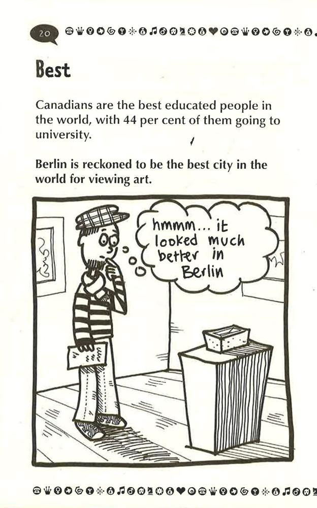 This work lets you discover where a three-headed turtle was discovered in 1999, where the first toothbrush was invented, which country has summer as the only season and where you can buy square watermelons! It is guaranteed to have young readers hooked for hours.