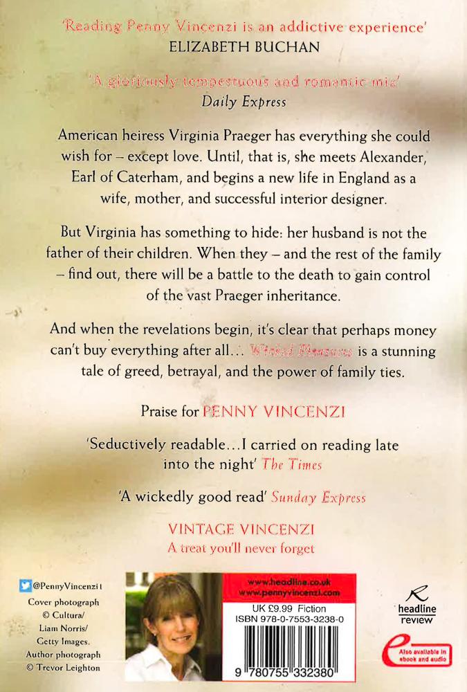 Family secrets and wicked deceptions abound in this delicious novel from Sunday Times Number One bestselling author Penny Vincenzi. All families have secrets. In Sunday Times bestseller Penny Vincenzi's WICKED PLEASURES lies a family secret that will tear it apart. 'Penny Vincenzi is the doyenne of the modern blockbuster' Glamour. Perfect for readers of Jilly Cooper, Elizabeth Buchan, Harriet Evan's THE BUTTERFLY SUMMER.Sexy, glamorous and fun, WICKED PLEASURES is the story of a brother and two sisters who find out that they all have different fathers: none of them Alexander, Earl of Catherham, who was married to their mother for almost twenty years. It is the story of the power and the greed of the mega-rich, as the great family banking business upon which fortunes are won and lost comes to the brink of ruin, and family ties are tested to the utmost.