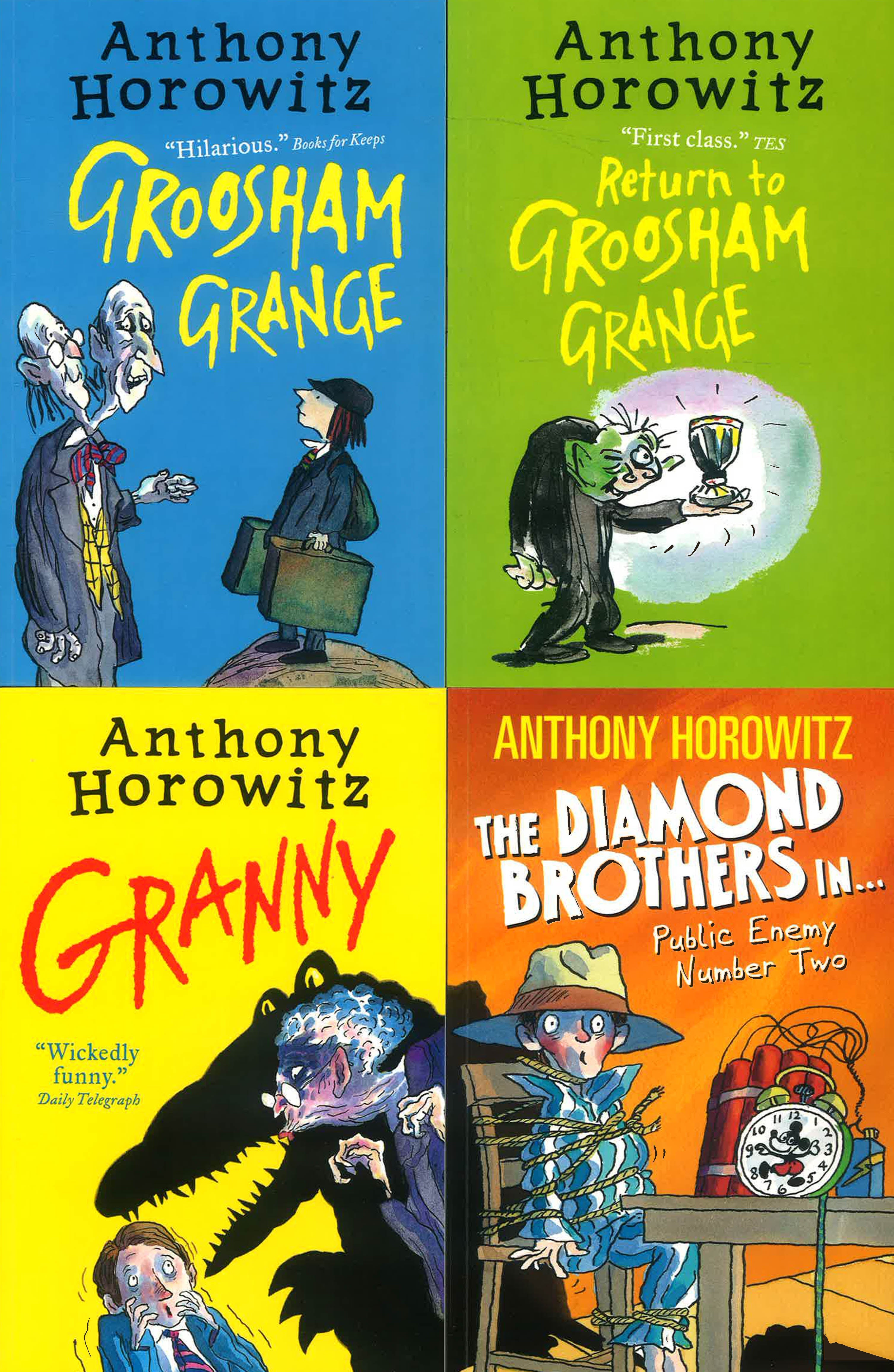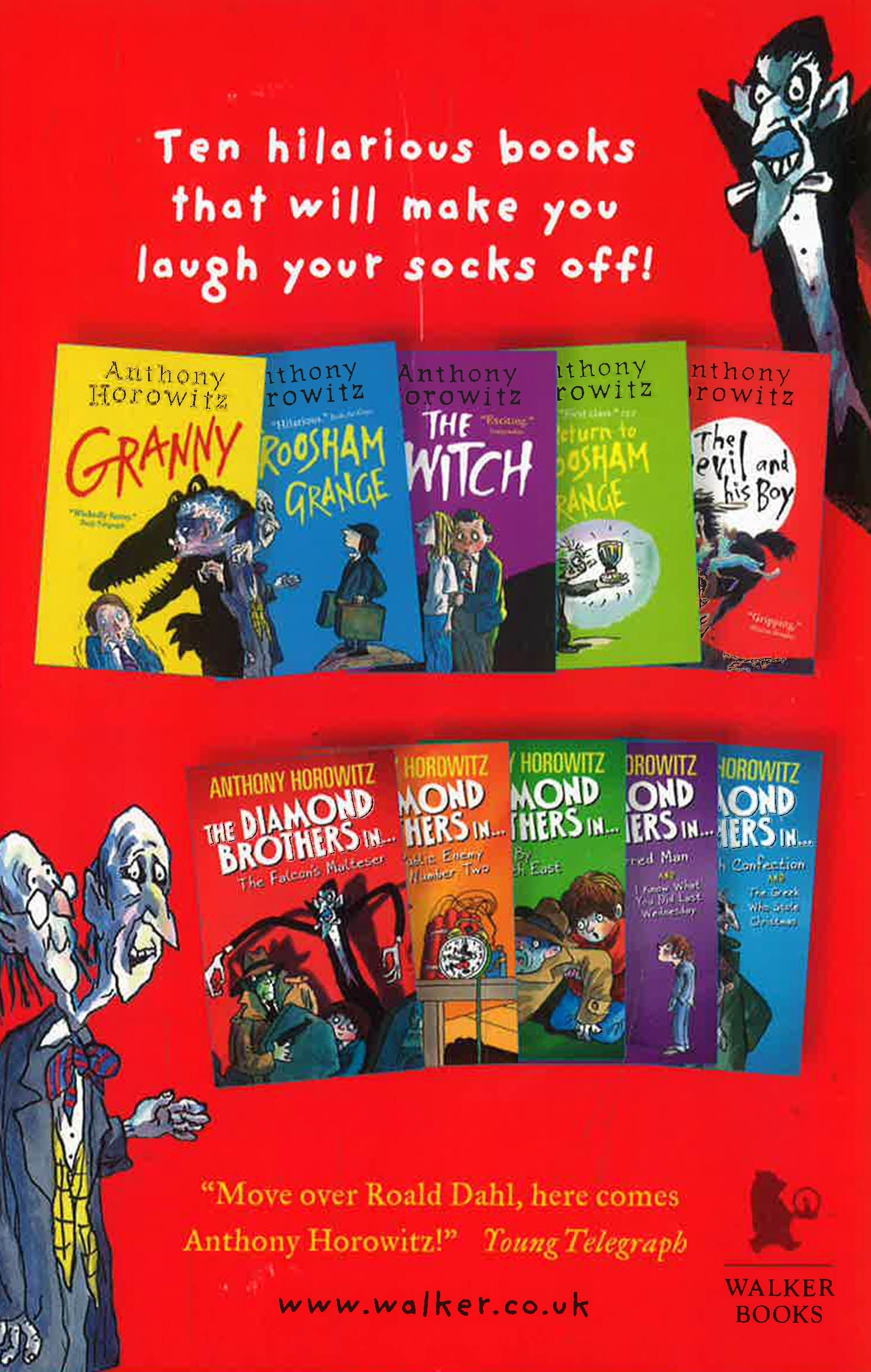 A brilliant box of spooky frights from the Alex Rider genius. Laugh out loud. Be very scared. We all love sensational spy Alex Rider. But what does Anthony Horowitz write about when it’s not spies? Wicked grannies. Vampire teachers. Devilish deeds. Yup – when it comes to funny frights, Horror-witz (as we call him) is your man. So grab ten of his best in this huge box set with funny new covers by master artist Tony Ross. The entire Groosham Grange series, set in the spookiest school on the planet. Plus heaps more. Lucky old you.