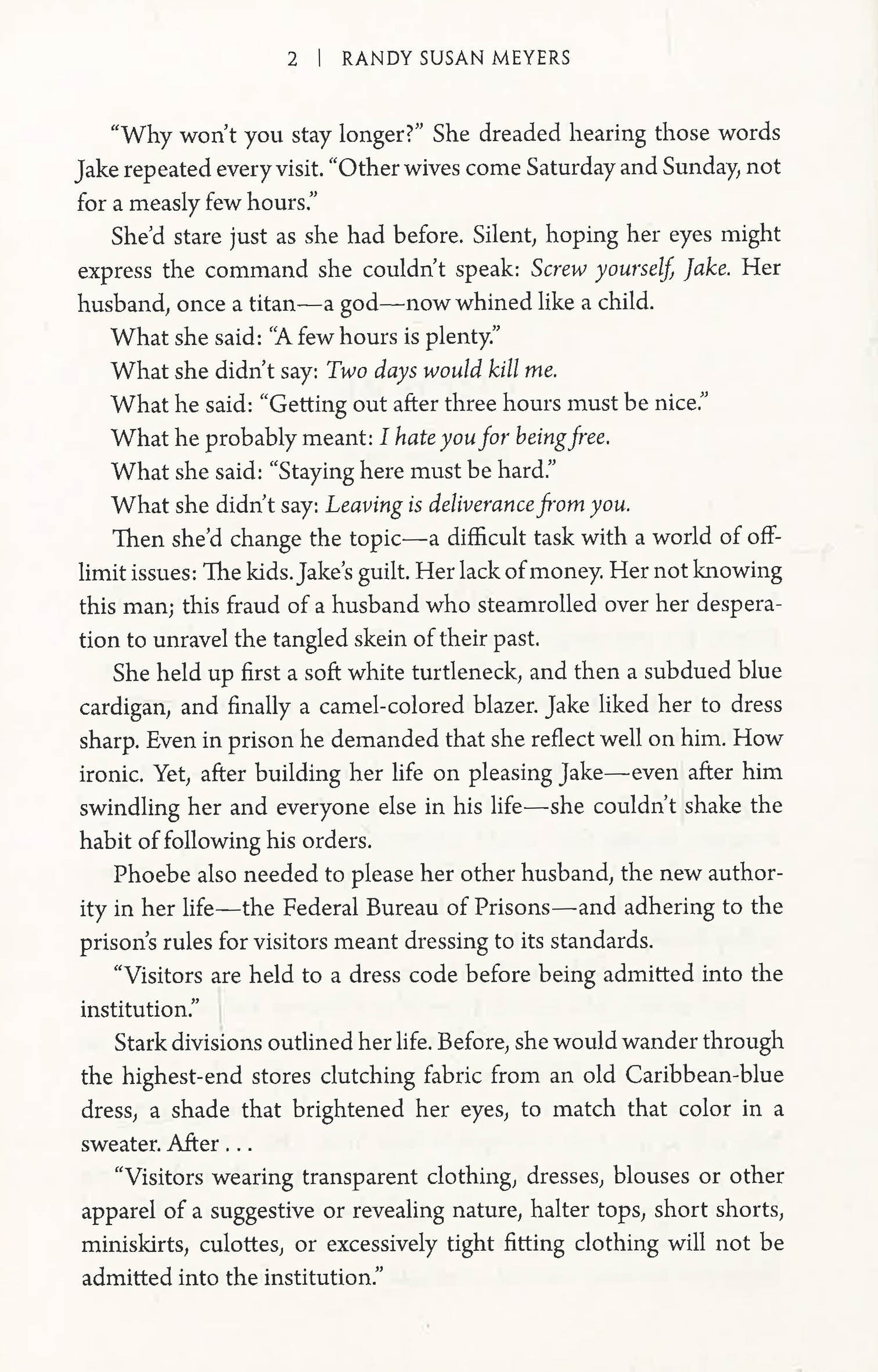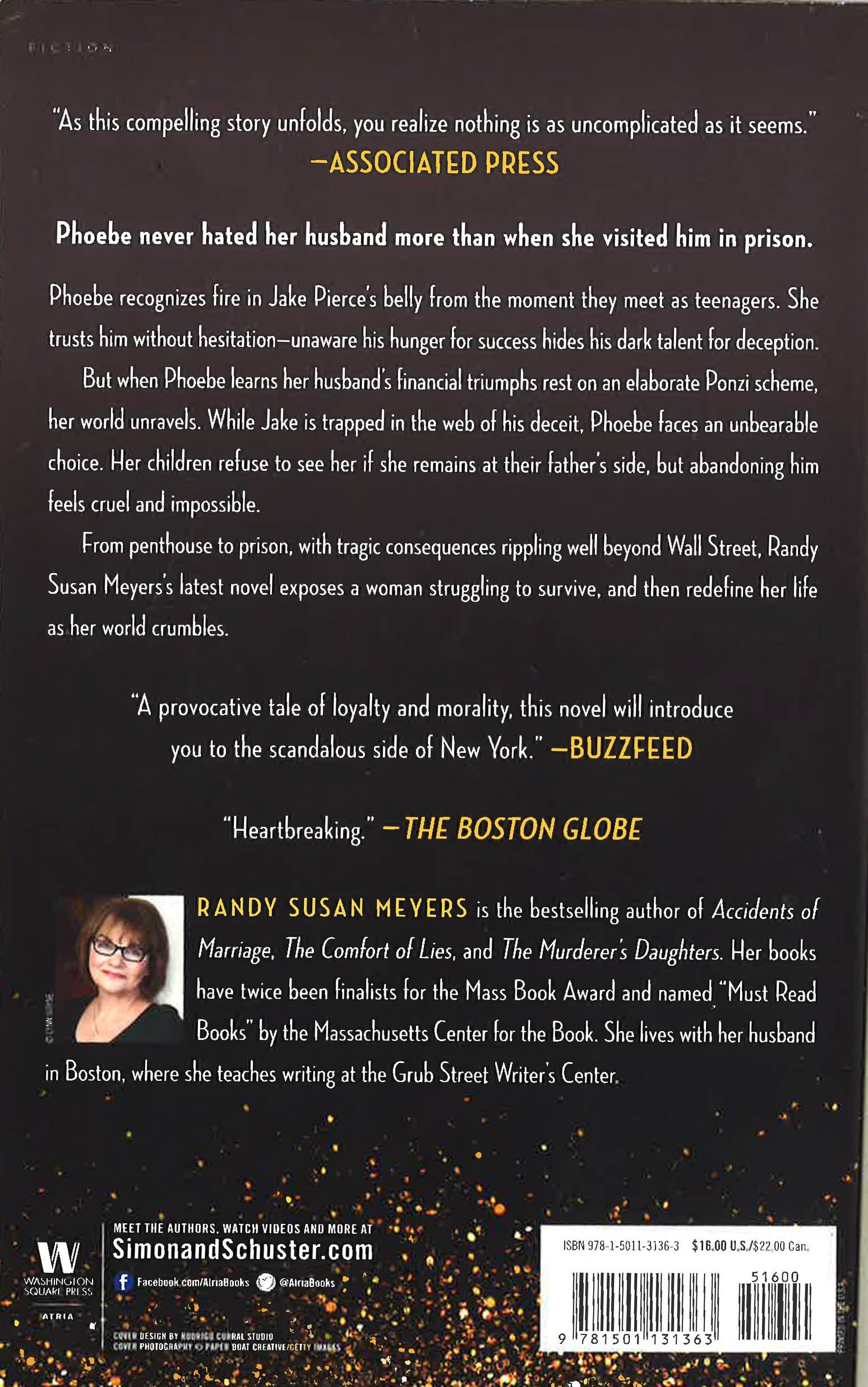 A provocative new novel by international bestselling author Randy Susan Meyers about the seemingly blind love of a wife for her husband as he conquers Wall Street, and her extraordinary, perhaps foolish, loyalty during his precipitous fall.Phoebe recognizes fire in Jake Pierce's belly from the moment they meet as teenagers. As he creates a financial dynasty, she trusts him without hesitation--unaware his hunger for success hides a dark talent for deception.From penthouse to prison, with tragic consequences rippling well beyond Wall Street, Randy Susan Meyers's latest novel exposes a woman struggling to survive and then redefine her life as her world crumbles.