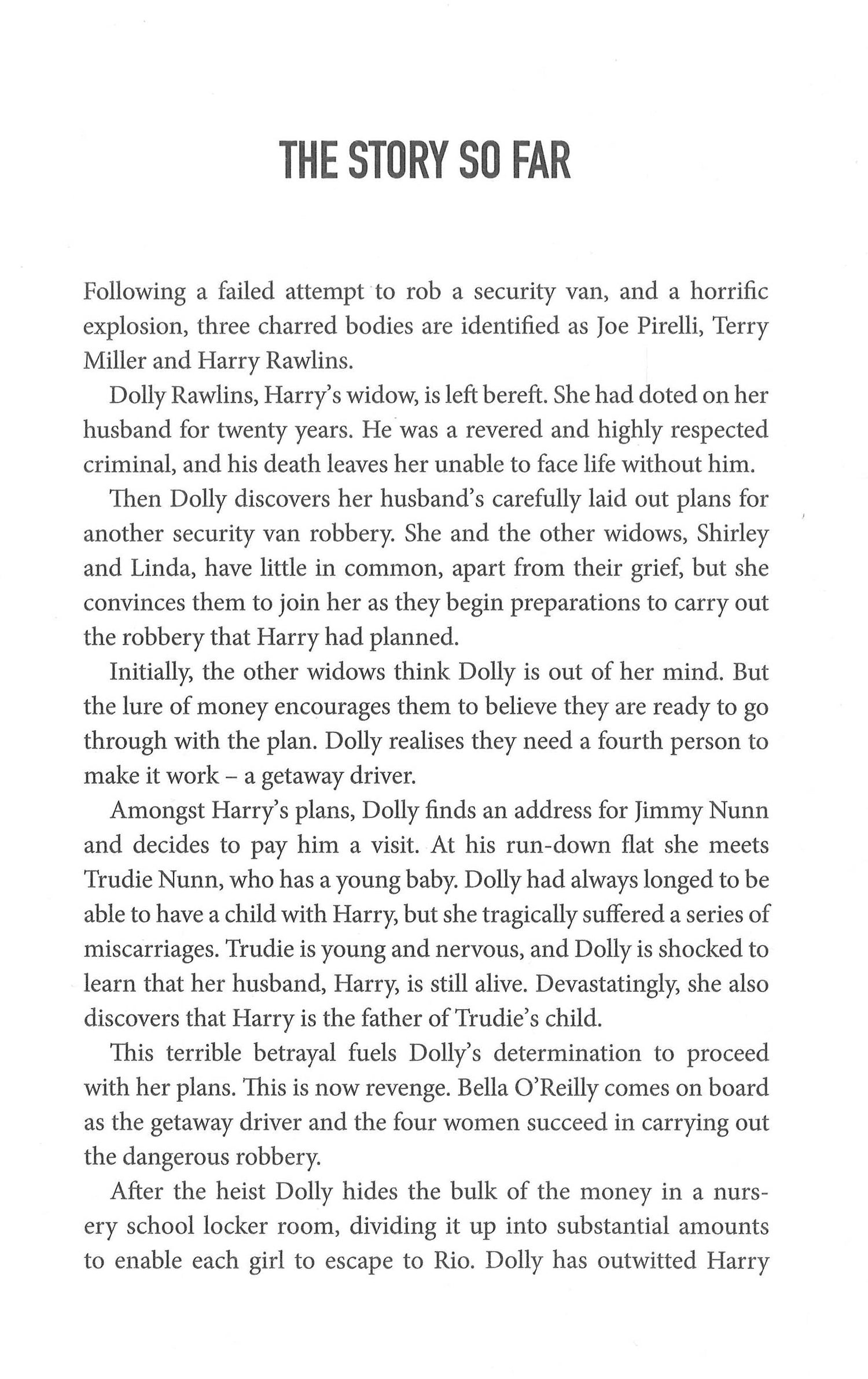 Against all the odds, Dolly Rawlins and her fellow gangland widows managed the impossible: a heist their husbands failed to pull off - at the cost of their lives. The follow-up to Lynda La Plante's groundbreaking thriller, Widows - now a major feature film.The sequel to Lynda La Plante's groundbreaking thriller, Widows - now a major feature film. DOLLY, LINDA, SHIRLEY AND BELLA ARE BACK. AND THIS TIME IT'S A FIGHT TO THE FINISH. Against all the odds, Dolly Rawlins and her gangland widows managed the impossible: a heist their husbands had failed to pull off - at the cost of their lives. But though they may be in the money, they're far from easy street. Shocked by her husband's betrayal, Dolly discovers Harry Rawlins isn't dead. He knows where the four women are and he wants them to pay. And he doesn't just mean getting his hands on the money. The women can't keep running. They have to get Harry out of their lives for good. But can they outwit a criminal mastermind who won't hesitate to kill? Especially when one of them has a plan of her own . . . to kill or be killed.