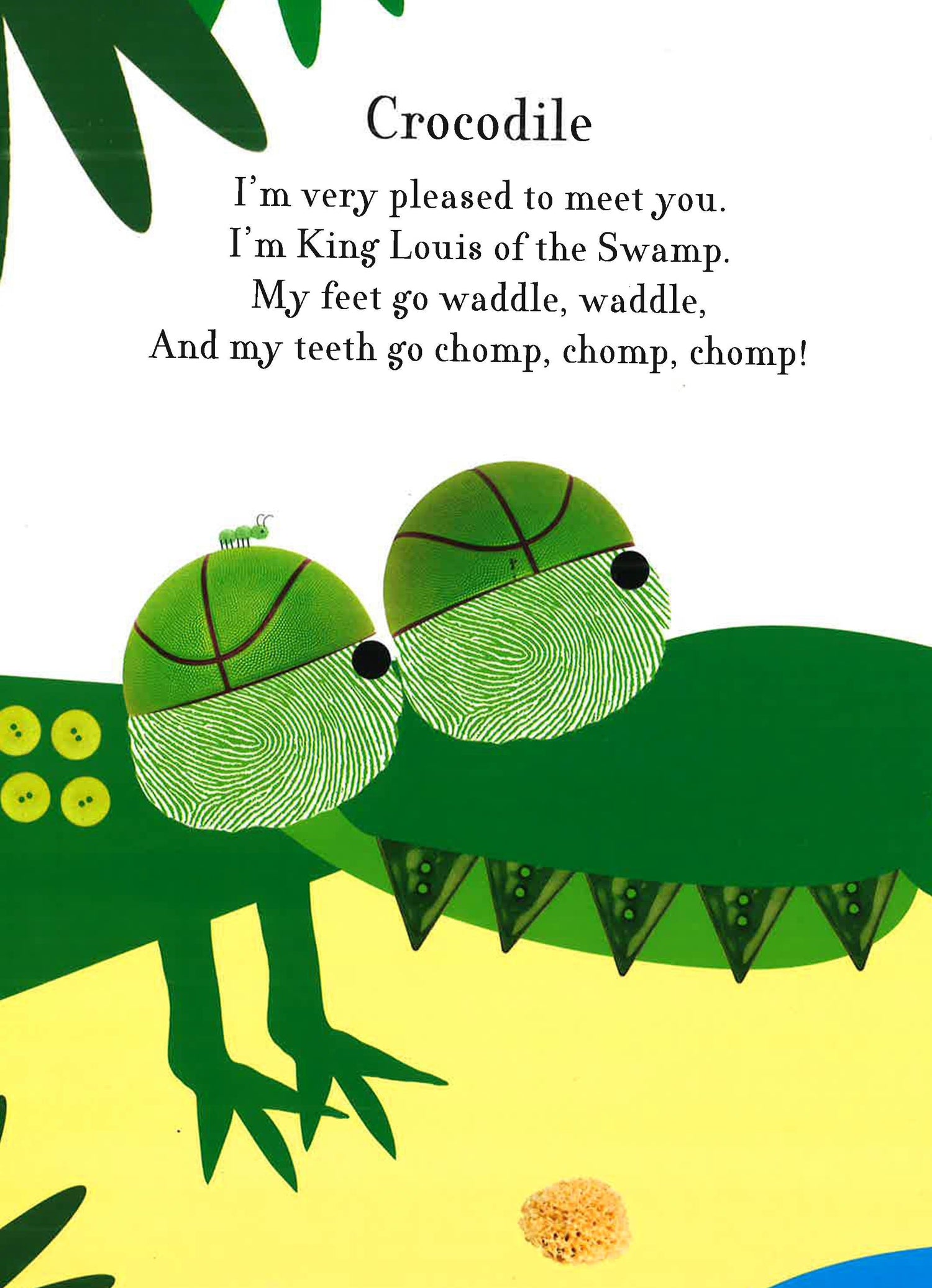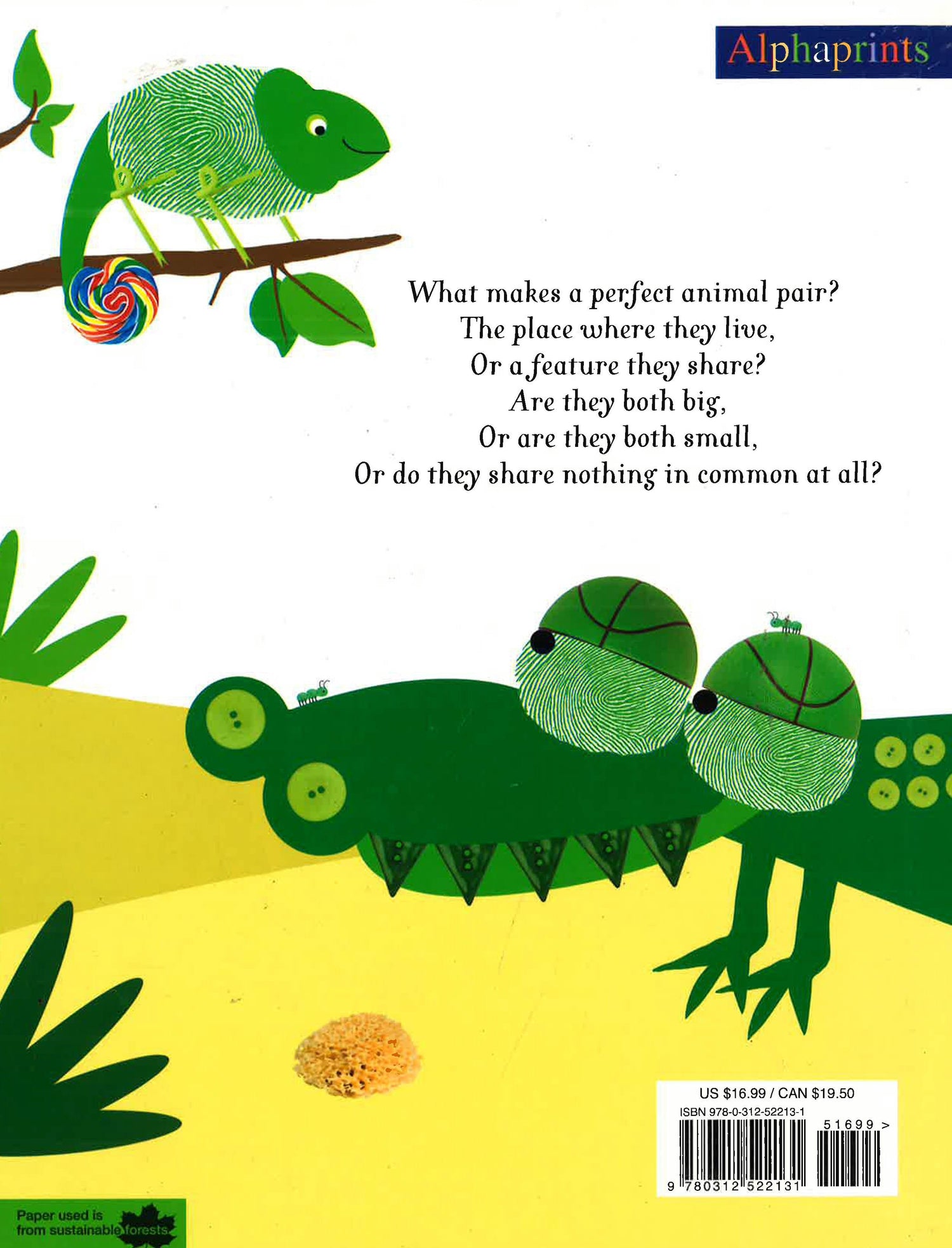 Meet the craziest, cutest Alphaprints characters and their unlikely friends. Some of them are odd couples, some are made for each other, but children will love them all. The engaging rhymes are fun to read aloud, and the artwork is a fascinating combination of fingerprints and photographs.