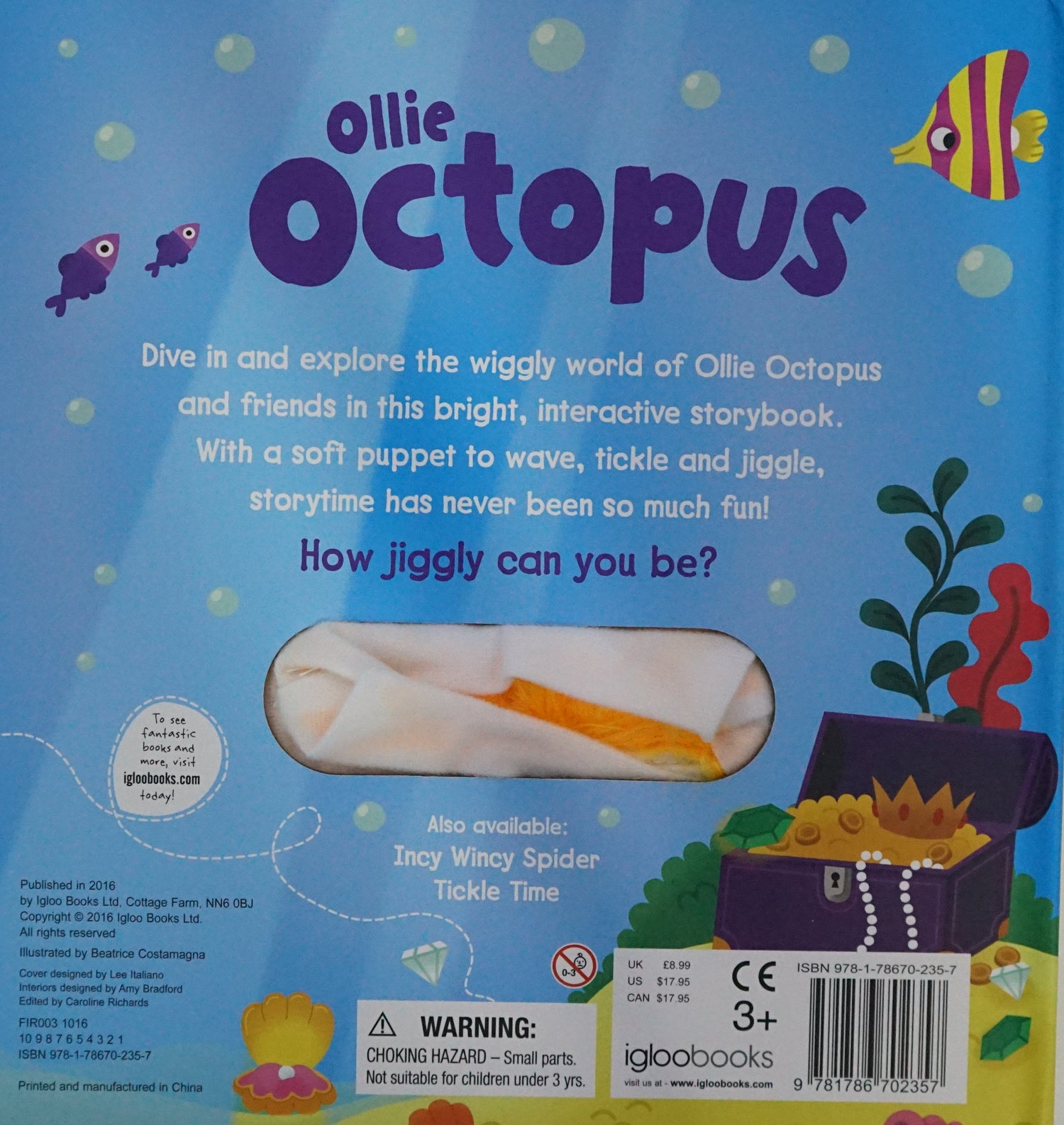 Dive in and explore the wiggly world of Ollie Octopus and friends in this bright, interactive storybook. With a soft puppet to wave, tickle and jiggle, storytime has never been so much fun!