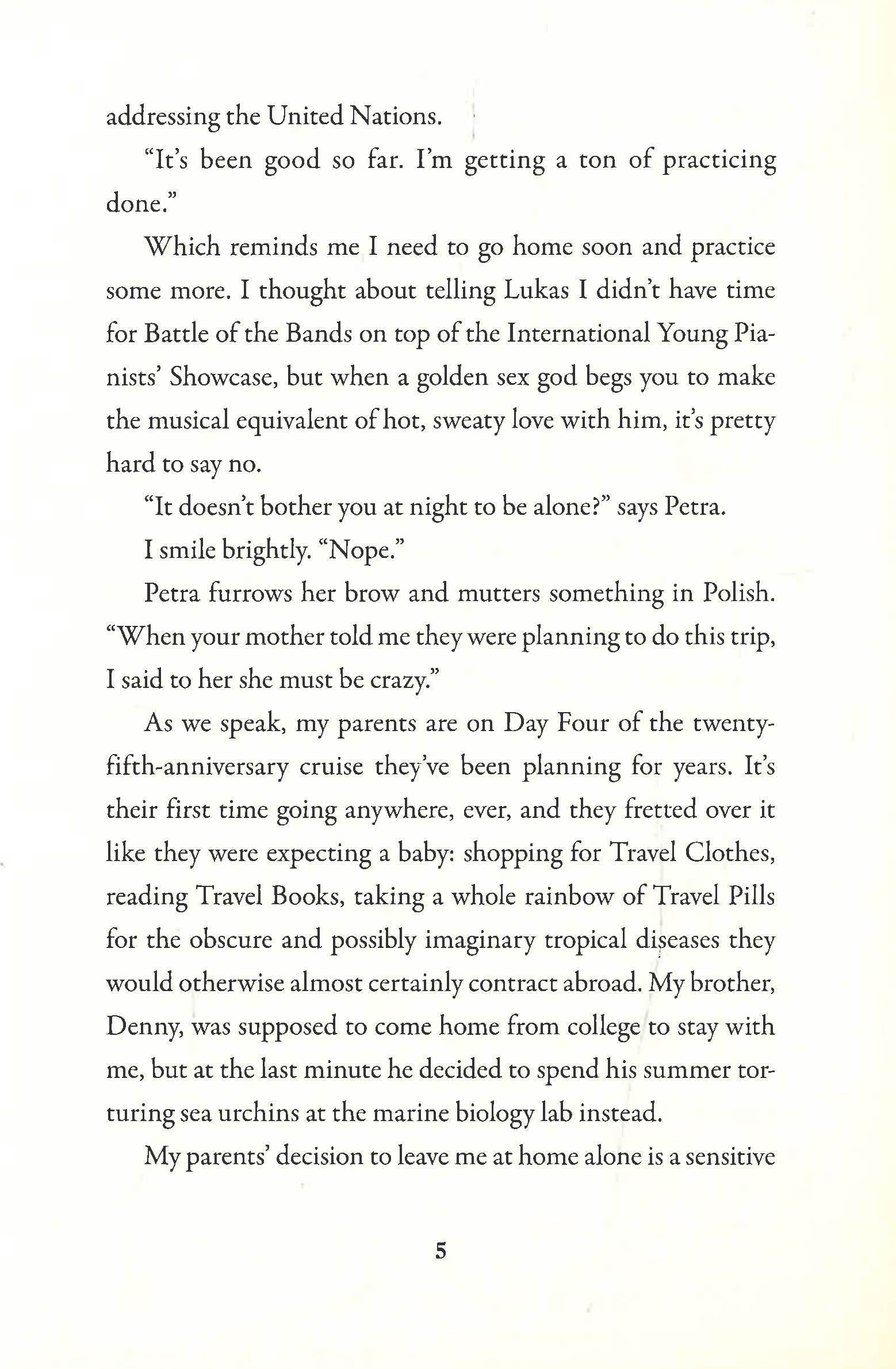Things you earnestly believe will happen while your parents are away: 1. You will remember to water the azaleas. 2. You will take detailed, accurate messages. 3. You will call your older brother, Denny, if even the slightest thing goes wrong. 4. You and your best friend/bandmate, Lukas, will win Battle of the Bands. 5. Amid the thrill of victory, Lukas will finally realize you are the girl of his dreams. Things that actually happen: 1. A stranger calls who says he knew your sister. 2. He says he has her stuff. 3. What stuff? Her stuff. 4. You tell him your parents won't be able to . . . 5. Sukey died five years ago; can't he . . . 6. You pick up a pen. 7. You scribble down the address. 8. You get on your bike and go. 9. Things . . . get a little crazy after that.* *Also, you fall in love, but not with Lukas. Both exhilarating and wrenching, Hilary T. Smith's debut novel captures the messy glory of being alive, as seventeen-year-old Kiri Byrd discovers love, loss, chaos, and murder woven into a summer of music, madness, piercing heartbreak, and intoxicating joy.