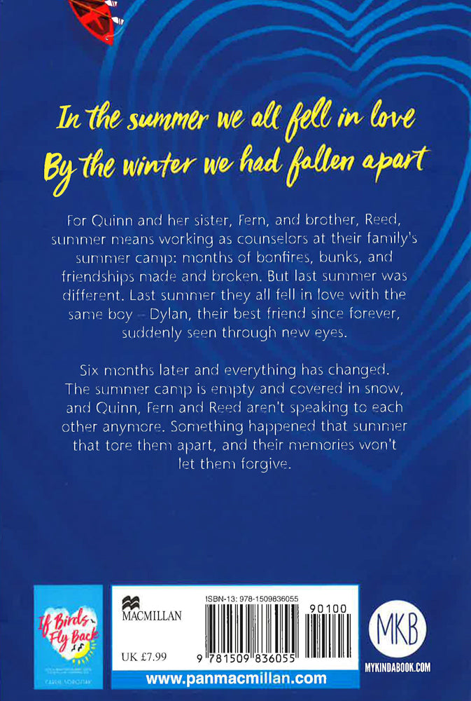 From the author of If Birds Fly Back comes Wild Blue Wonder, an achingly beautiful novel of first love and falling apart.In the summer we all fell in loveBy the winter we had fallen apartFor Quinn and her sister, Fern, and brother, Reed, summer means working as counselors at their family's summer camp: months of bonfires, bunks, and friendships made and broken. But last summer was different. Last summer they all fell in love with the same boy - Dylan, their best friend since forever, suddenly seen through new eyes. Six months later and everything has changed. The summer camp is empty and covered in snow, and Quinn, Fern and Reed aren't speaking to each other anymore. Something happened that summer that tore them apart, and their memories won't let them forgive.Wild Blue Wonder is the gorgeous, achingly beautiful novel from Carlie Sorosiak, author of If Birds Fly Back.