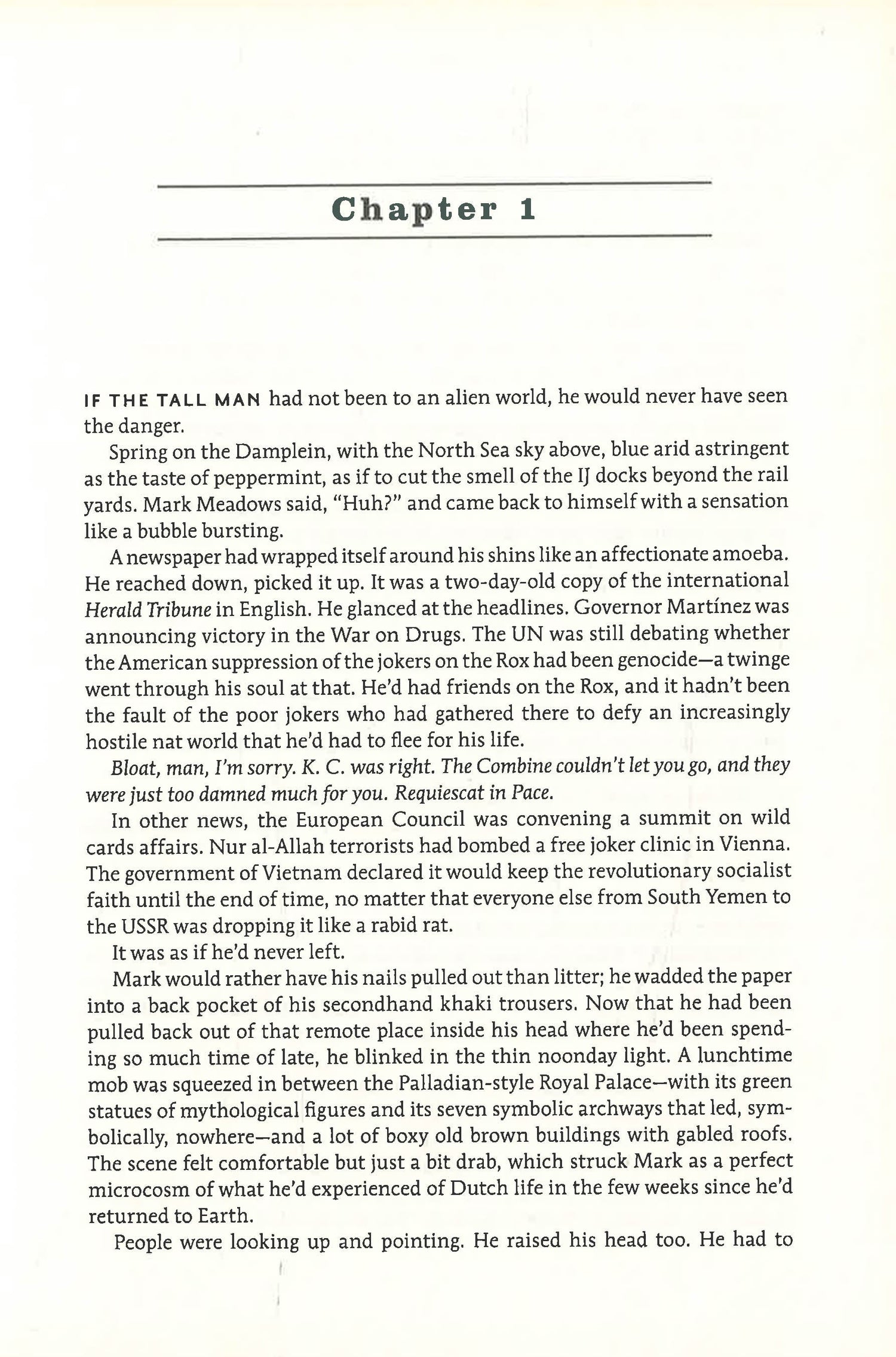 Pursued by the CIA, the DEA, and the Wild Card mistress of the winds, Mistral, renegade biochemist Mark Meadows uses the three personalities buried in his psyche to outwit his pursuers. Fleeing across Europe and Asia, Mark meets a Vietnam veteran with an astounding plan--to lead an army of jokers in a war of conquest. Caught between jokers who despise him and nationalists who want him dead, Mark must decide whether to unleash his ace powers for a madman's bloody dream, or to stay true to his peaceful ideals--and die.