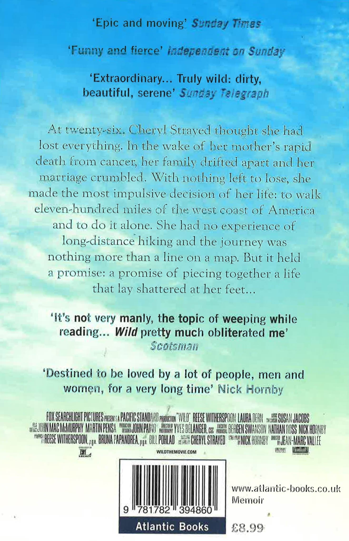 A number one New York Times bestseller Oprah's Book Club 2.0 selection Radio Four's 'Book of the Week' The official tie-in edition to the stunningly raw and powerful film adaptation of the bestselling memoir, starring Reese Witherspoon. At twenty-six, Cheryl Strayed thought she had lost everything. In the wake of her mother's rapid death from cancer, her family disbanded and her marriage crumbled. With nothing to lose, she made the most impulsive decision of her life: to walk eleven-hundred miles of the west coast of America and to do it alone. She had no experience of long-distance hiking and the journey was nothing more than a line on a map. But it held a promise - a promise of piecing together a life that lay shattered at her feet...