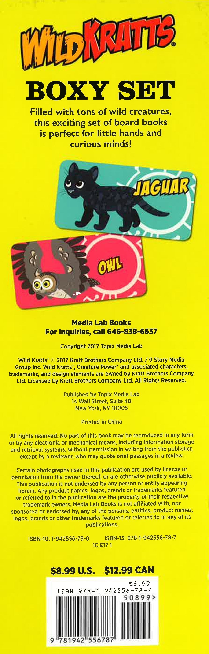 The Wild Kratts Boxy Book Set is perfectly designed for the tiny hands of young animal lovers. Children will love turning the thick pages of these three miniature board books to discover their favorite animals from the wildly popular PBS show Wild Kratts and parents will love the introduction to flying, running, climbing, and swimming animals. A great gift for infants, toddlers and early readers!