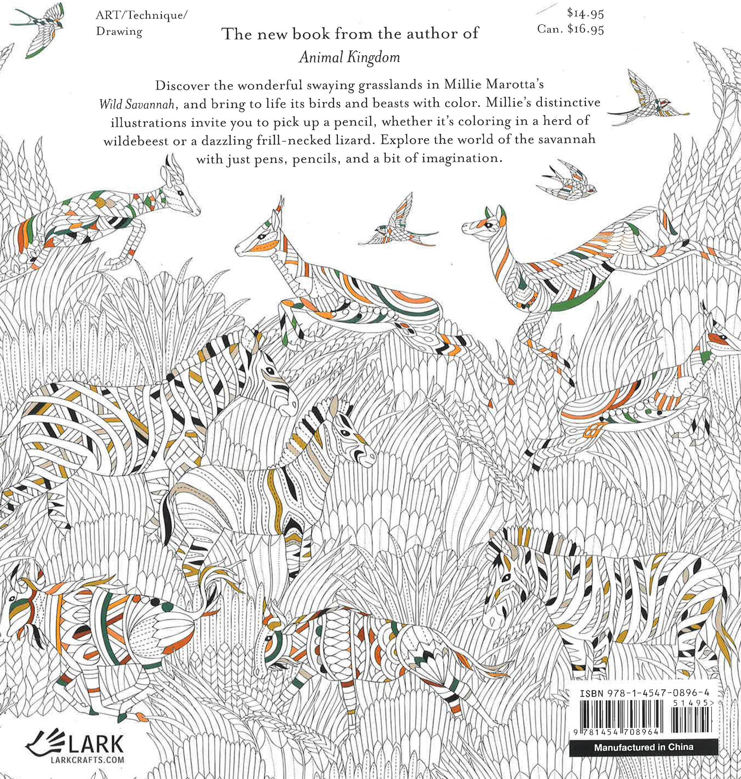 Millie Marotta is one of the most popular creators of adult coloring books--and this beautiful volume features stunningly sophisticated patterns inspired by the savannah. Her intricate black-and-white drawings capture a myriad of the flora and fauna found in that breathtaking landscape, including elephants, rhinos, zebras, and ostriches. The high-quality stock is perfect for color pencils, as well.