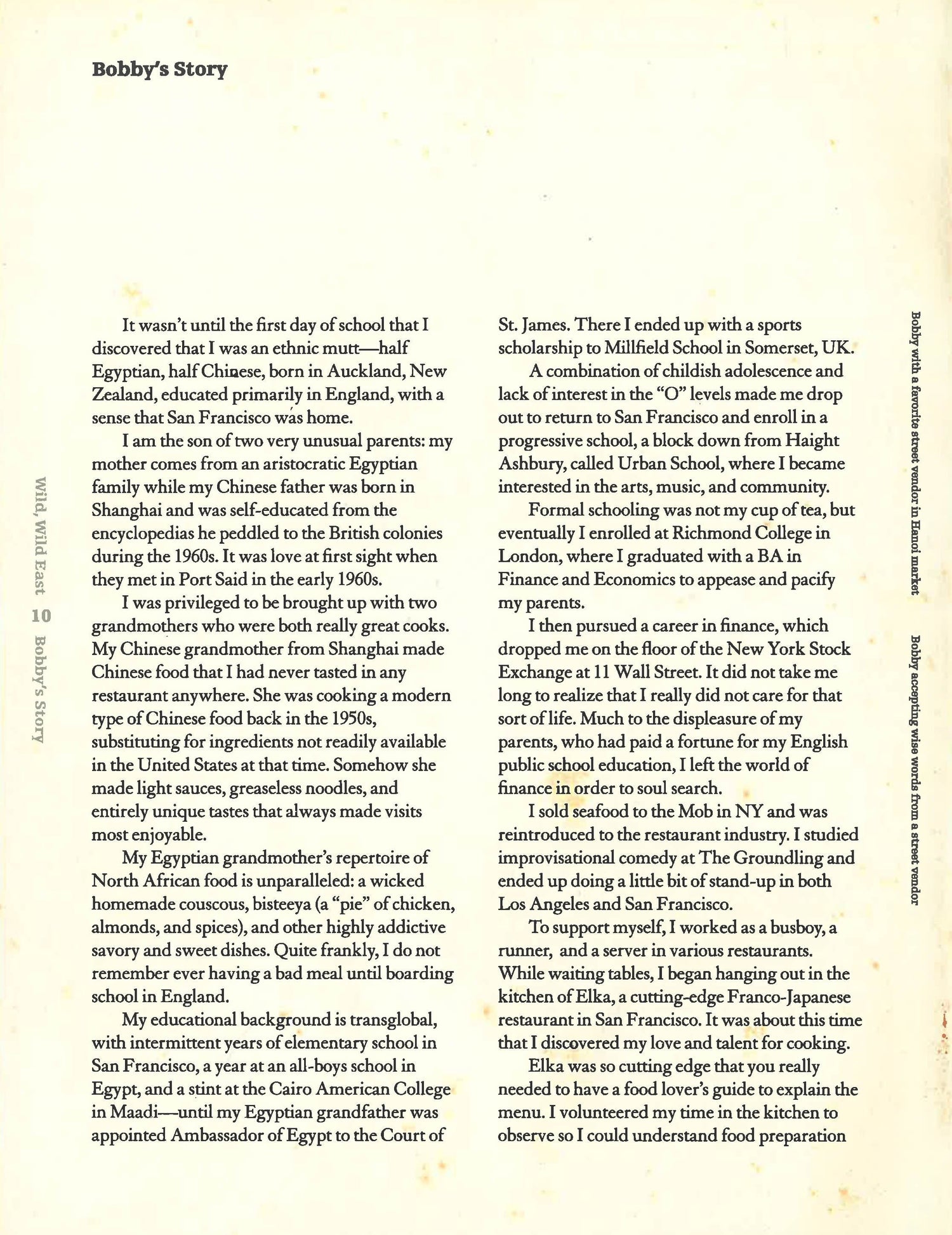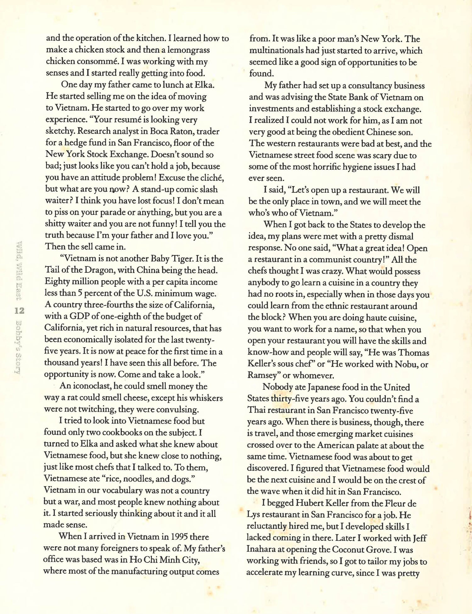 The world is discovering Vietnamese food, and it's a happy discovery indeed! " Wild, Wild East " is the creation of chef Bobby Chin, Hanoi's " enfant terrible " and renowned master of Vietnamese cuisine. He characterizes Vietnamese food as having fresh, clean flavors, and as being light, healthy, and diverse. More than a recipe book, " Wild, Wild East " is the author's authentic guide to Vietnamese food as it is prepared and enjoyed today. Combining his lively text with Jason Lowe's striking color photos of Vietnam's markets, kitchens, people, and foods, Bobby Chin starts out with instructions for preparing Vietnamese sauces, garnishes, and dips. Next, he provides recipes for a host of exotic and delectable dishes that include-- Minced Prawns on Sugar Cane Chicken Wings Cooked in Caramel Sauce and Ginger Braised Banana Blossoms Meat, Crab, and Grapefruit Salad Shrimp and Pork Crepe Stir-fried Noodles and Beef Pan Roasted Salmon and Wasabi Mashed Potatoes . . . and many, many more Also included are delightful salads and special Vietnamese desserts that the author calls " Sweet Sensations. " This entertaining and informative book features approximately 100 recipes for exotically delicious dishes and 200 color photos. (Sidebar) From the Book's Foreword by renowned chef and TV host Anthony Bourdain "Bobby Chinn, chef, long time resident of Southeast Asia, television personality, hustler, International Man of Mystery, and now author, is the first guy you want to know in Hanoi if you want to find where to get the good stuff to eat, how to make it, and why it's made that way. . . . what Bobby doesn't know about Southeast Asian food is not worth knowing.