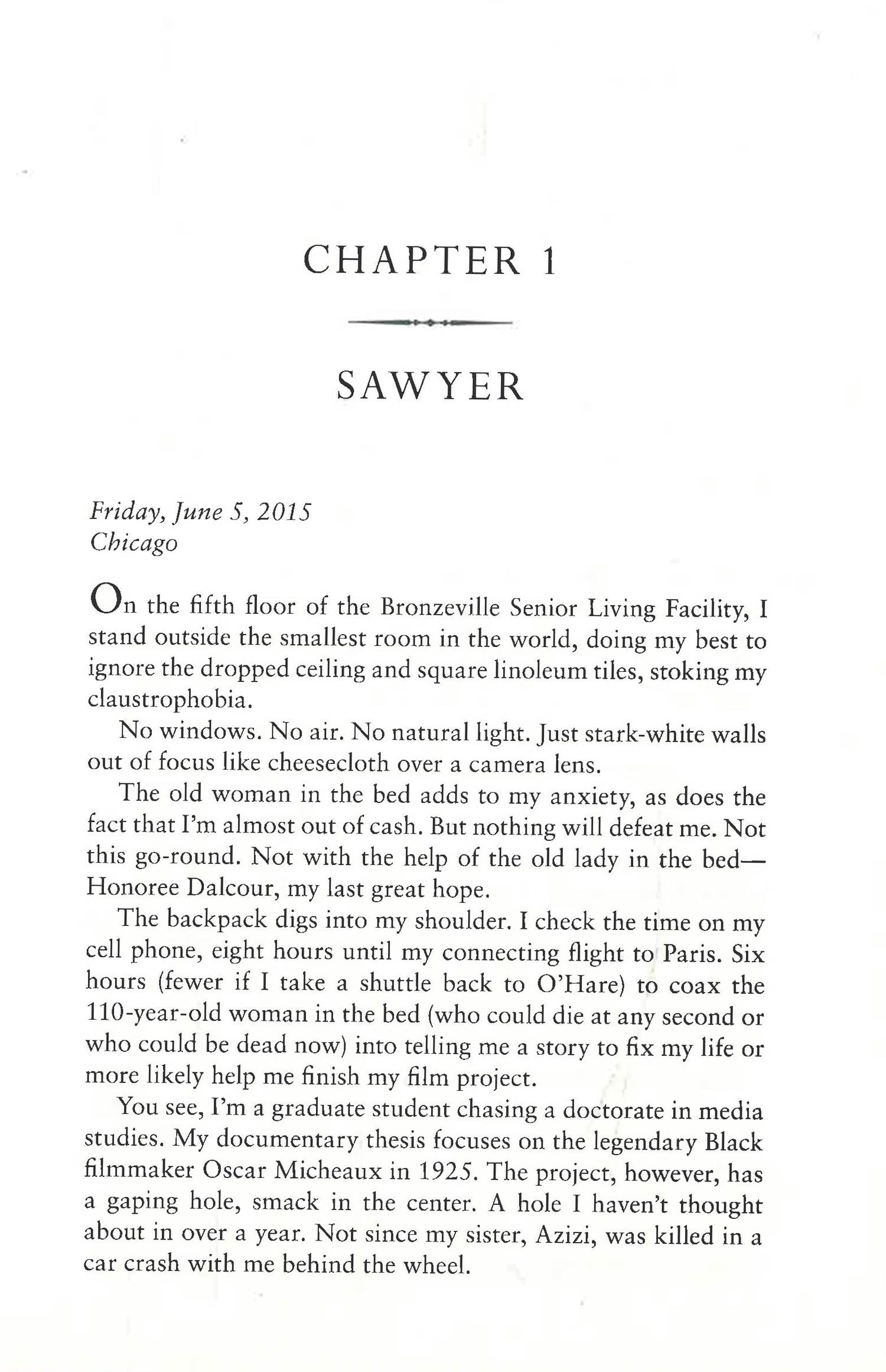 2015: Film student Sawyer Hayes arrives at the bedside of 110-year-old Honoree Dalcour, still reeling from a devastating loss that has taken him right to the brink. Sawyer has rested all his hope on this frail but formidable woman, the only living link to the legendary Oscar Micheaux. If he’s right—if she can fill in the blanks in his research, perhaps he can complete his thesis and begin a new chapter in his life. But the links Honoree makes are not ones he’s expecting...