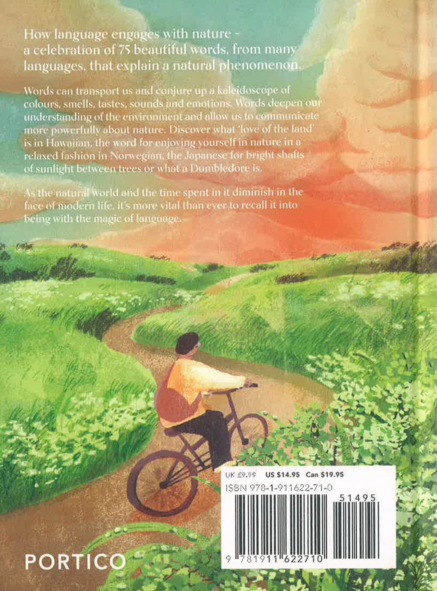 The book showcases 75 beautiful words evocative of the wild, from all around the world, that describe natural happenings in nature. It includes words that describe weather, or a feeling you have when in nature as well as sensory words that explain the smell or sound of a place.