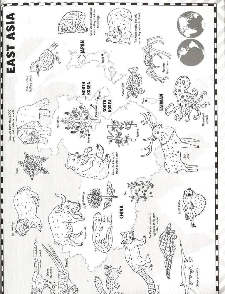 Color and explore the natural world like never before. With stunning illustrated maps featuring animals insects flowers and plants from different countries around the world, children can color in the pictures and learn about flora and fauna as they go. Each page is perforated so finished maps can be removed and displayed.