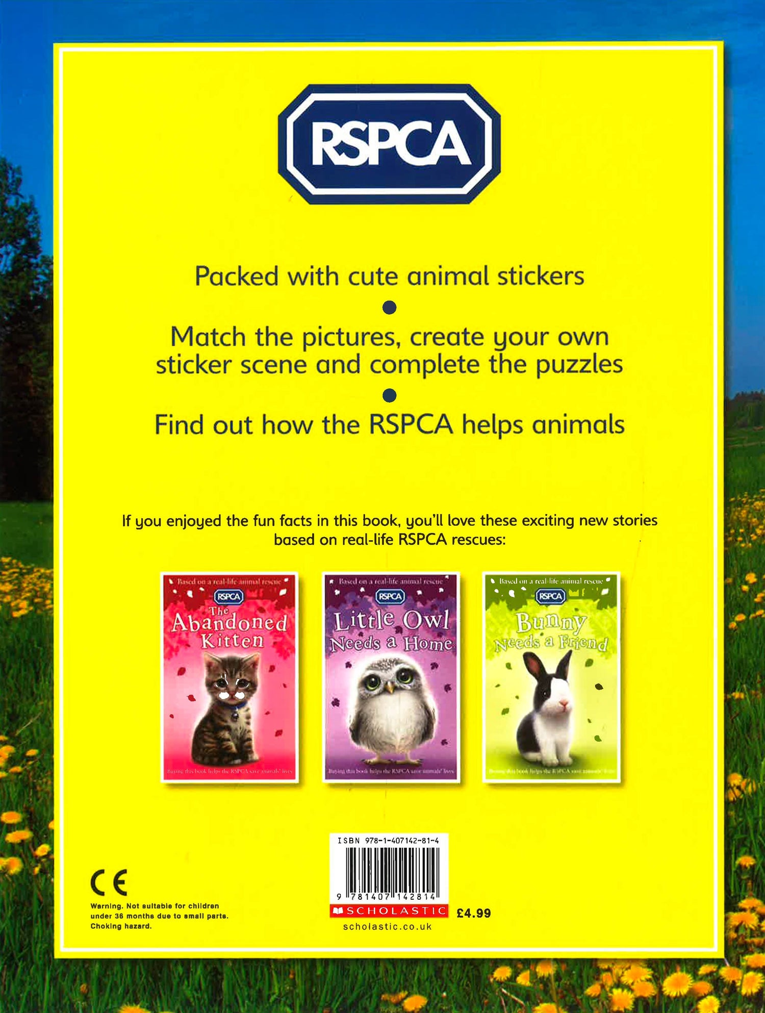 RSPCA: WILDLIFE BABIES STICKER BOOK is the perfect sticker book for young animal lovers. Filled with full-colour gorgeous, cute and fluffy stickers of wildlife babies. This book is ideal for any child who adores rabbits, hedgehogs, badgers and lots more wildlife babies. Readers can decorate beautiful backgrounds with animals stickers or use them separately to decorate anything they like! The ideal buy for lovers of wildlife babies. Fully endorsed by the RSPCA. Buying this book helps the RSPCA save animals' lives.