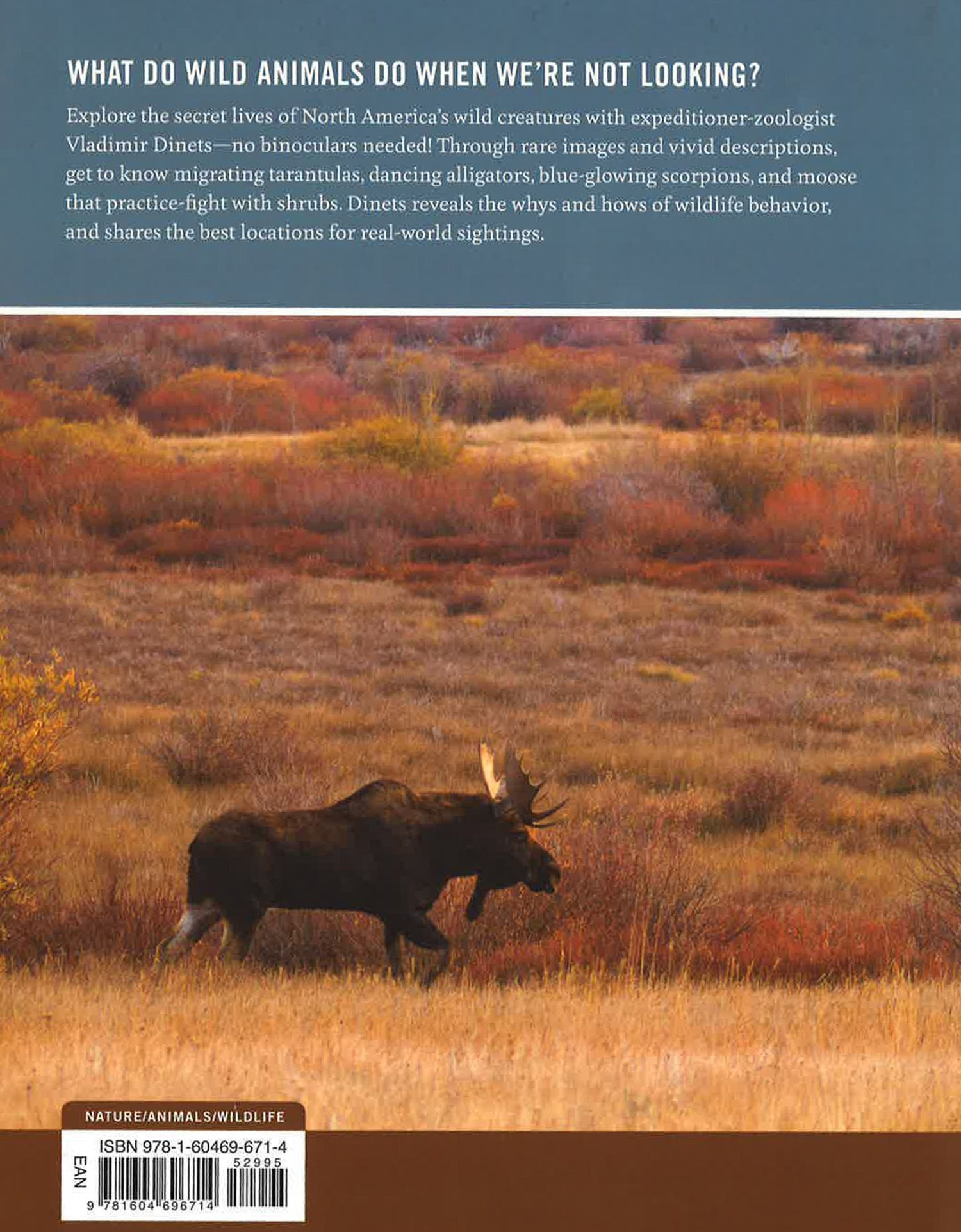 What do wild animals do when we're not looking? Explore the secret lives of North America's wild creatures with expeditioner-zoologist Vladimir Dinets - no binoculars needed! Through rare images and vivid descriptions, get to know migrating tarantulas, dancing alligators, blue-glowing scorpions, and moose that practice-fight with shrubs. Dinets reveals the whys and hows of wildlife behavior, and shares the best locations for real-world sightings.