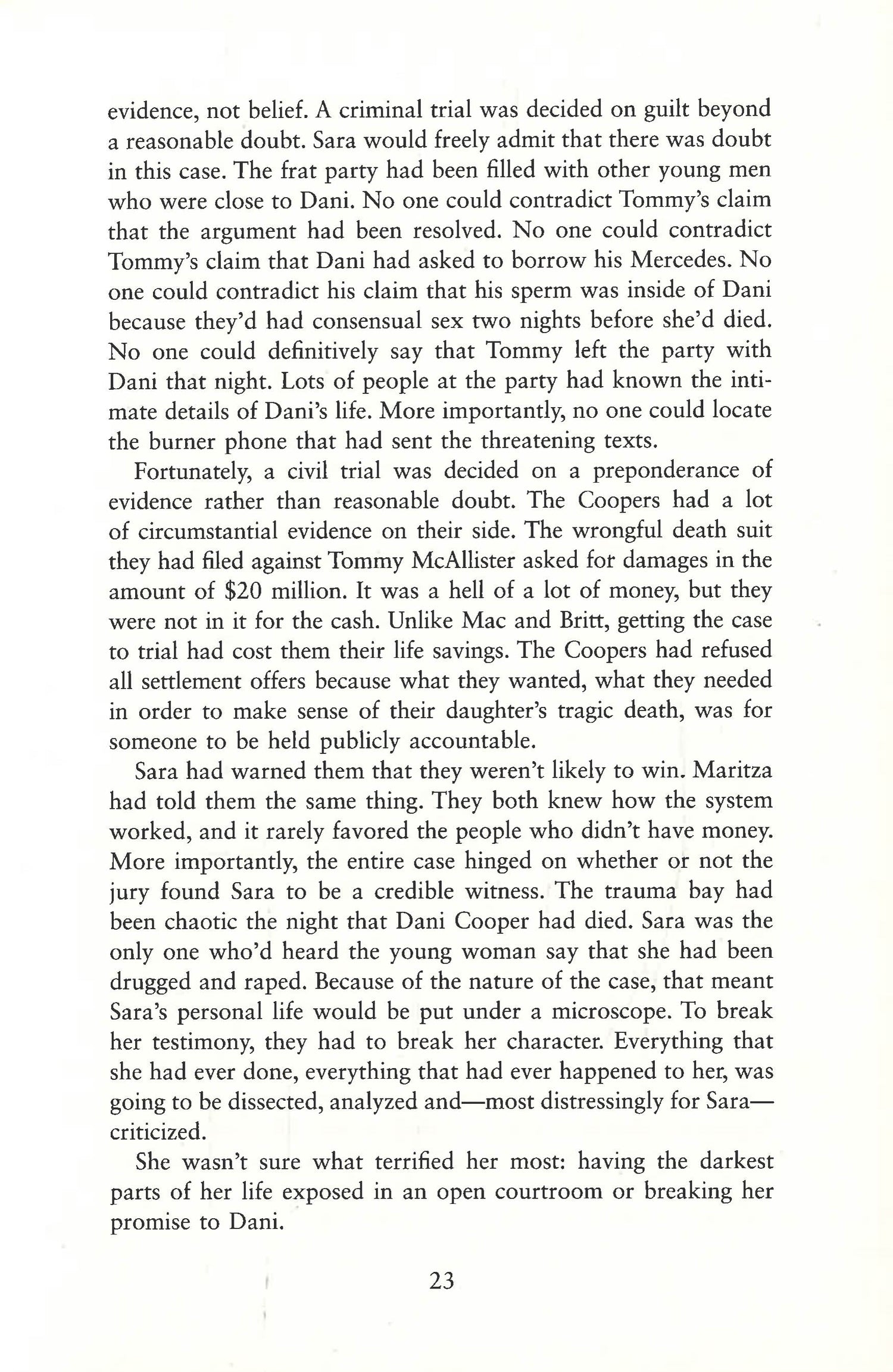 Until one evening, on call in the ER, everything changes. Sara battles to save a broken young woman who's been brutally attacked. But as the investigation progresses, led by GBI Special Agent Will Trent, it becomes clear that Dani Cooper's assault is uncannily linked to Sara's.