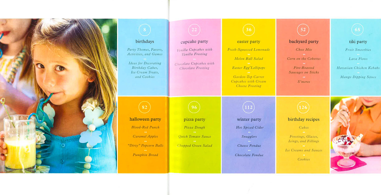 With eye-catching photography that will entice all ages, an easy-to-use format, and lots of neat ideas, Kids Parties will inspire creative party giving throughout the year. From a pretty pink cupcake party with a butterfly theme and an outdoor Easter gathering with a spirited egg hunt to a spooky Halloween get-together with punch the color of blood, Kids Parties is packed with a year's worth of fun-filled birthday and holiday celebrations for kids from ages four to ten. Seven distinctively themed parties are featured. Each one offers a work plan to help you budget your time; a menu and recipes; fresh, new ideas for invitations, decorations, and favors; and suggestions for games, crafts, and other party-time activities. Many of the recipes are geared toward getting the kids involved, from making pizza to decorating lollipops to frosting cupcakes. And every menu includes food ideas for partygoers of different ages and tastes.