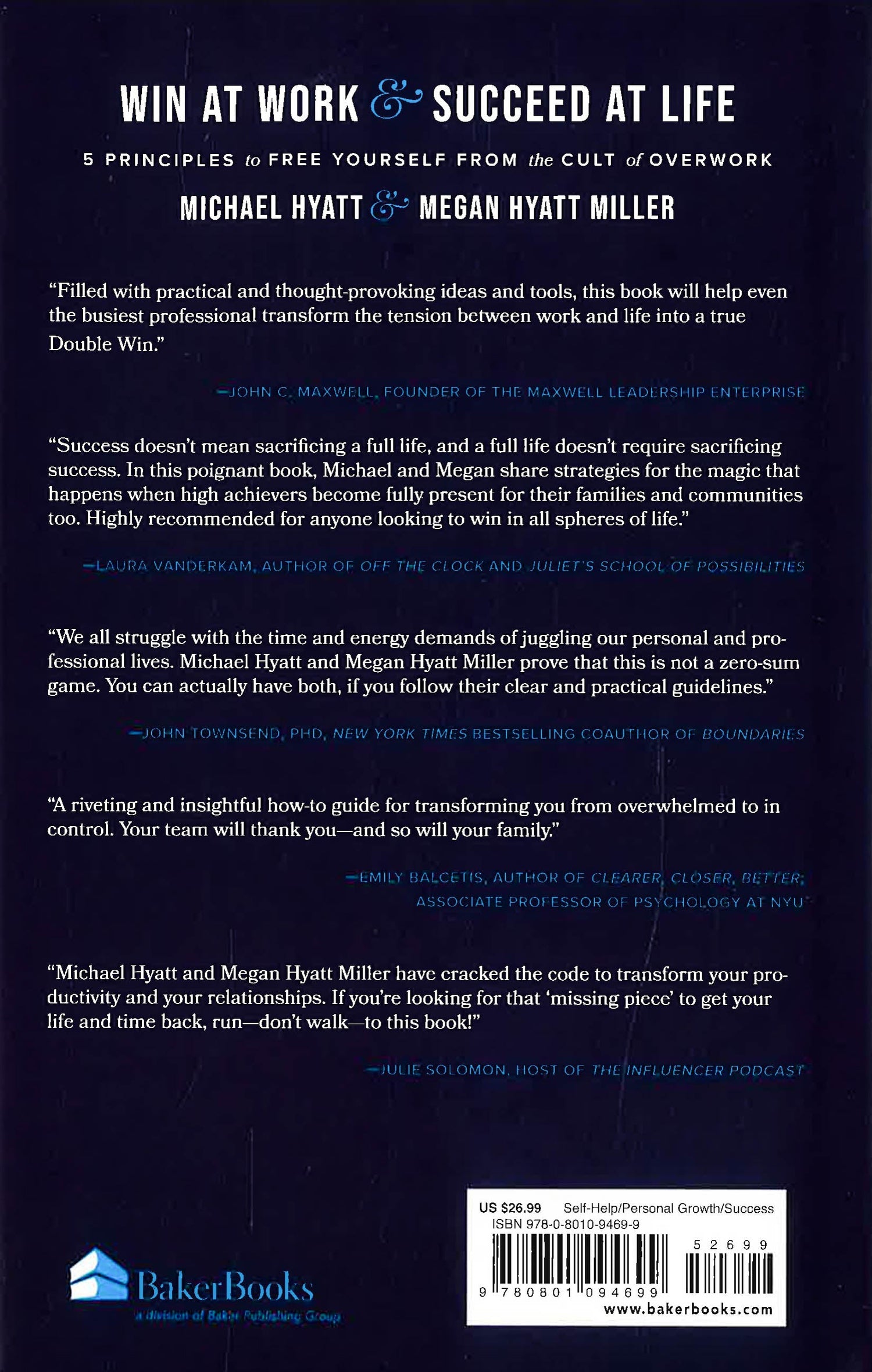 Great leaders are driven to win. Yet career wins can come at great cost to your health, relationships, and personal well-being. Why does it seem impossible to both win at work and succeed at life? Michael Hyatt and Megan Hyatt Miller know we can do better because he's seen it in his more than four decades as a successful executive and a loving and present husband and father. Today Michael and his daughter, Megan Hyatt Miller, coach leaders to live the double win. Backed by scholarly research from organizational science and psychology, and illustrated with eye-opening case studies from across the business spectrum and their own coaching clients, Win at Work and Succeed at Life is their manifesto on how you can achieve work-life balance and restore your sanity. With clarity, humor, and plenty of motivation, Win at Work and Succeed at Life gives you - an understanding of the historical and cultural forces that have led to overworking - 5 principles to rethink work and productivity from the ground up - simple but proven practices that enable you to slow down and reclaim your life - and more Refuse the false choice of career versus family. You can achieve the double win in life.