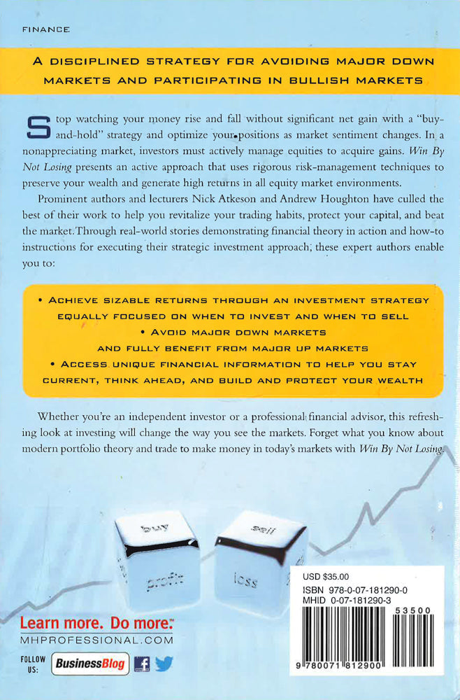A DISCIPLINED STRATEGY FOR AVOIDING MAJOR DOWN MARKETS AND PARTICIPATING IN BULLISH MARKETSYour financial advisor's strategy to buy-and-hold a diversified equity portfolio sounded good. Diversification promised to protect your wealth. Now, however, more than a decade of hard data shows it didn't work. And, more than likely after a decade of multiple financial shocks and crashes, your account balance is not what you hoped it would be when you started saving years ago. Much of your investment life has been spent just trying to make back what was lost.Win By Not Losing reveals how you can make smarter, more profi table investments by first protecting your capital from major bear equity markets. It also shows you how to identify major bullish equity market trends and guides you on how best to participate. By avoiding the major downs and catching the ups, your portfolio compounds gains and allows you to achieve your financial goals.Chasing returns leads to the poorhouse.With this book's disciplined system for knowing when to buy, what to buy, and when to sell, you can build and protect your portfolio through active management techniques. It walks you step-by-step through growing yourportfolio in bull and bear market cycles. You will master a concrete investing method that lets you trade with emotionless confidence and precision. Packed with links to online resources and personal tips from successful,high-profile traders, Win By Not Losing gives you everything you need to:Identify the market metrics that are important to building wealthDetect and measure the market signals foreshadowing major movesBuild a portfolio with strong downside protection, full transparency, immediate liquidity, low fees, and incredible risk-adjusted returnsYour portfolio returns will continue to be disappointing unless you act. It's time to make up for lost profits by taking an active, professional, and nonemotional portfolio management approach to avoid majorlosses and capture gains. Win By Not Losing provides everything you need to build wealth in today's stock market.Stop watching your money rise and fall without signifi cant net gain with a "buy-and-hold" strategy and optimize your positions as market sentiment changes. In anonappreciating market, investors must actively manage equities to acquire gains. Win By Not Losing presents an active approach that uses rigorous risk-management techniques to preserve your wealth and generate high returns in all equity market environments.Prominent authors and lecturers Nick Atkeson and Andrew Houghton have culled the best of their work to help you revitalize your trading habits, protect your capital, and beat the market. Through real-world stories demonstrating fi nancial theory in action and how-to instructions for executing their strategic investment approach, these expert authors enable you to:Achieve sizable returns through an investment strategyequally focused on when to invest and when to sellAvoid major down markets and fully benefit from major up marketsAccess unique financial information to help you staycurrent, think ahead, and build and protect your wealthWhether you're an independent investor or a professional financial advisor, this refreshing look at investing will change the way you see the markets. Forget what you know about modern portfolio theory and trade to make money in today's markets with Win By Not Losing."Anyone with some experience in the stock market, especially the person who wants to move beyond a buy and hold strategy, can find useful tidbits in this book."ReadingTheMarkets.com