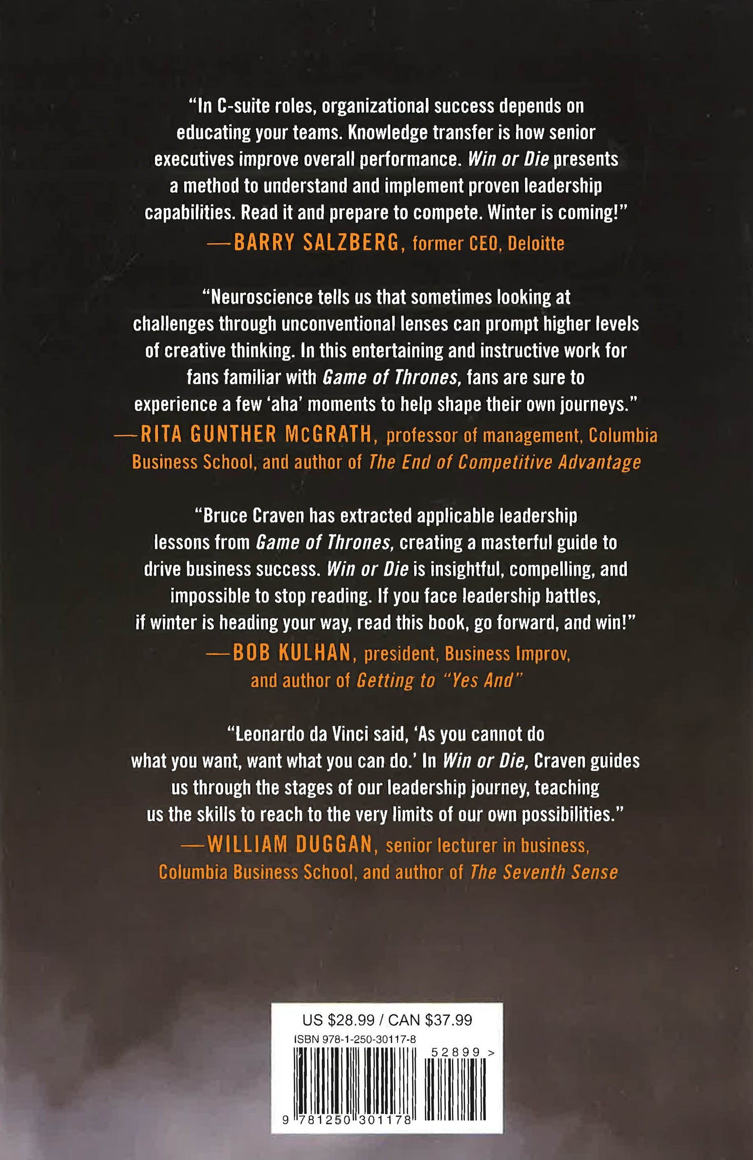 Every day you're presented with opportunities and challenges, and must decide which roads to follow, which risks to confront, when to deny an opportunity and when to pursue the call to adventure. And you won't know whether you'll profit or fail while you're in the thick of it. In Win or Die: Leadership Secrets from Game of Thrones, Bruce Craven brilliantly analyzes the journeys of the best and worst leaders in Westeros, so that leaders can create their own narratives of success.