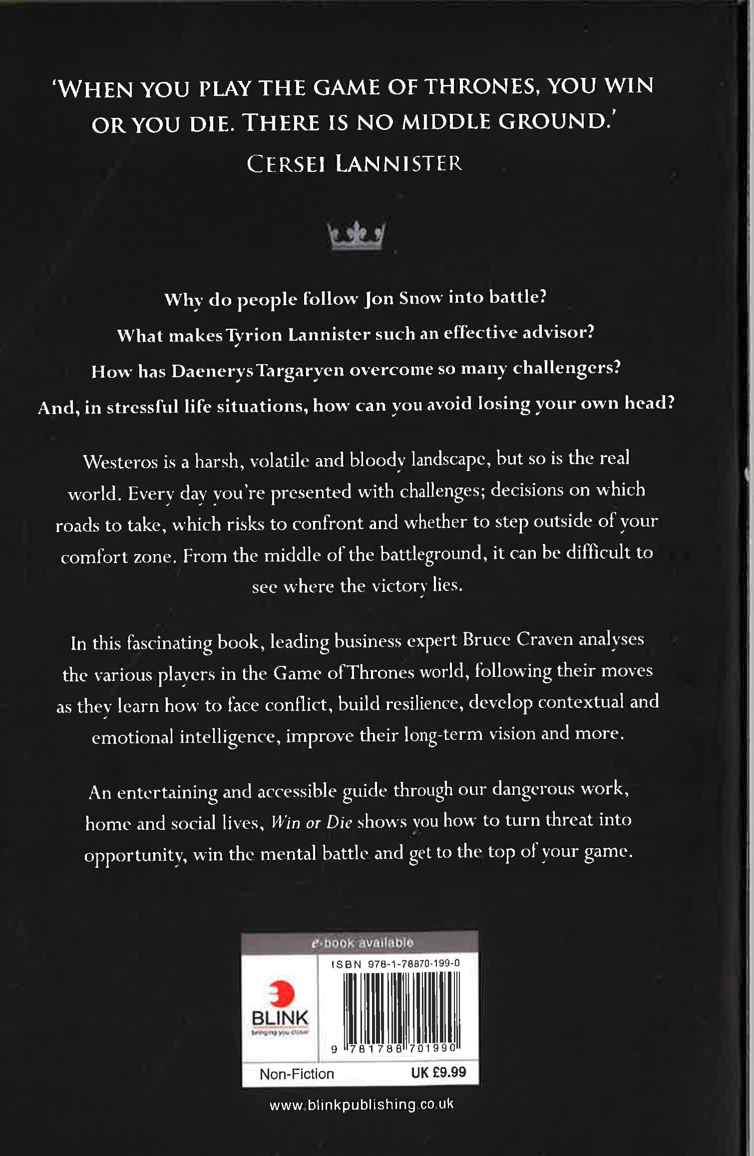 Why do people follow Jon Snow into battle? What makes Tyrion Lannister such an effective advisor? How has Daenerys Targaryen overcome so many challengers? And, in stressful life situations, how can you avoid losing your own head? Westeros is a harsh, volatile and bloody landscape, but so is the real world. Every day you're presented with challenges; decisions on which roads to take, which risks to confront and whether you should answer the call to adventure and go for the option that's outside of your comfort zone. From the middle of the battleground, it can be difficult to see where the victory lies. In this fascinating book, leading business expert Bruce Craven analyses the various players in the Game of Thrones world, following their moves as they learn how to face conflict, build resilience, develop contextual and emotional intelligence, improve their long-term vision and more. An entertaining and accessible guide through our dangerous work, home and social lives, Win or Die shows that even when enemies are at the city gates and dragons circle above, you too can turn threat into opportunity, win the mental battle and get to the top of your game.
