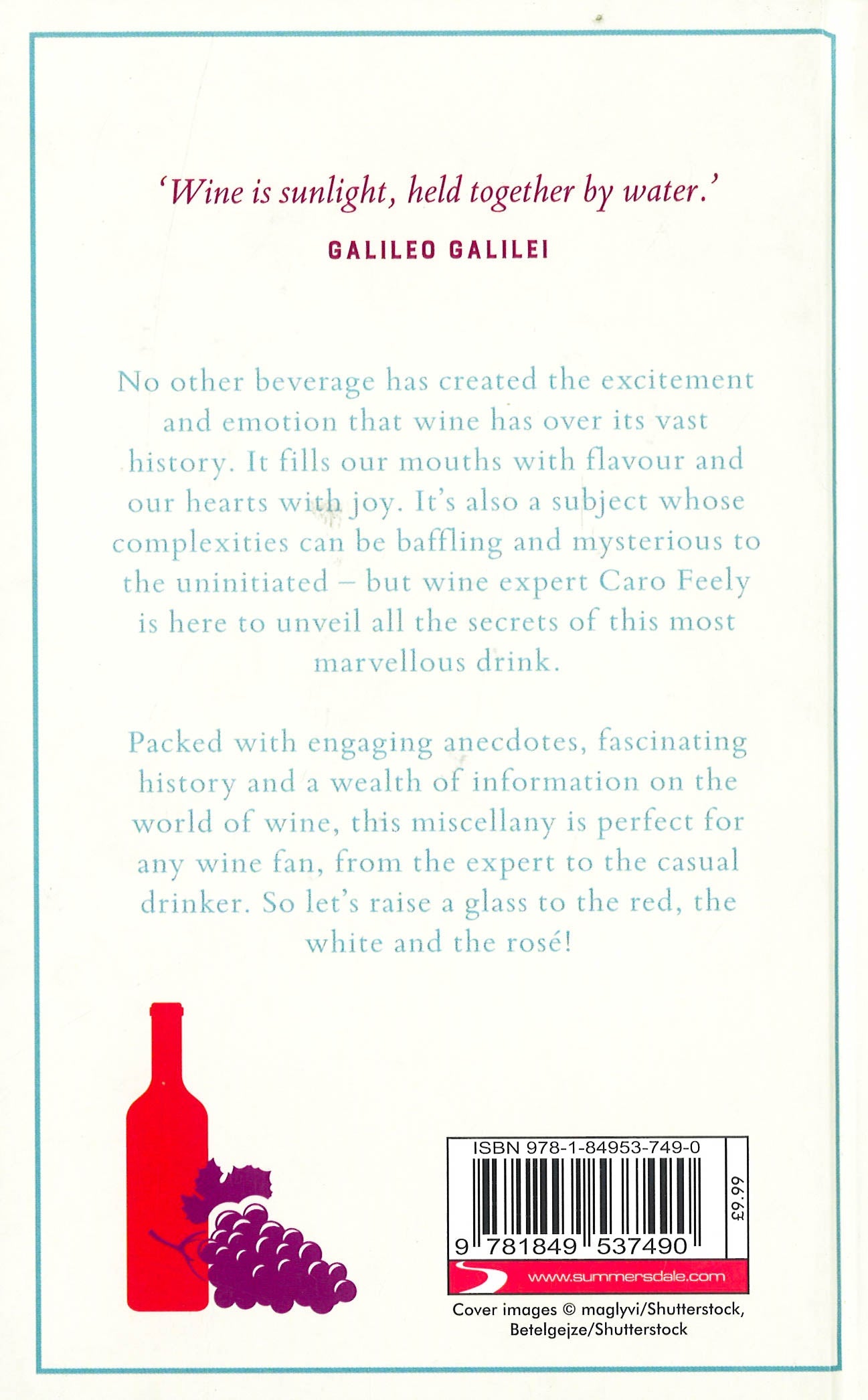 No other beverage has created the excitement and emotion that wine has over its vast history. It fills our mouths with flavour and our hearts with joy. It's also a subject whose complexities can be baffling and mysterious to the uninitiated - but wine expert Caro Feely is here to unveil all the secrets of this most marvellous drink. Wine is sunlight, held together by water.' Galileo Galilei No other beverage has created the excitement and emotion that wine has over its vast history. It fills our mouths with flavour and our hearts with joy. It's also a subject whose complexities can be baffling and mysterious to the uninitiated - but wine expert Caro Feely is here to unveil all the secrets of this most marvellous drink. Packed with engaging anecdotes, fascinating history and a wealth of information on the world of wine, this miscellany is perfect for any wine fan, from the expert to the casual drinker. So let's raise a glass to the red, the white and the rose!