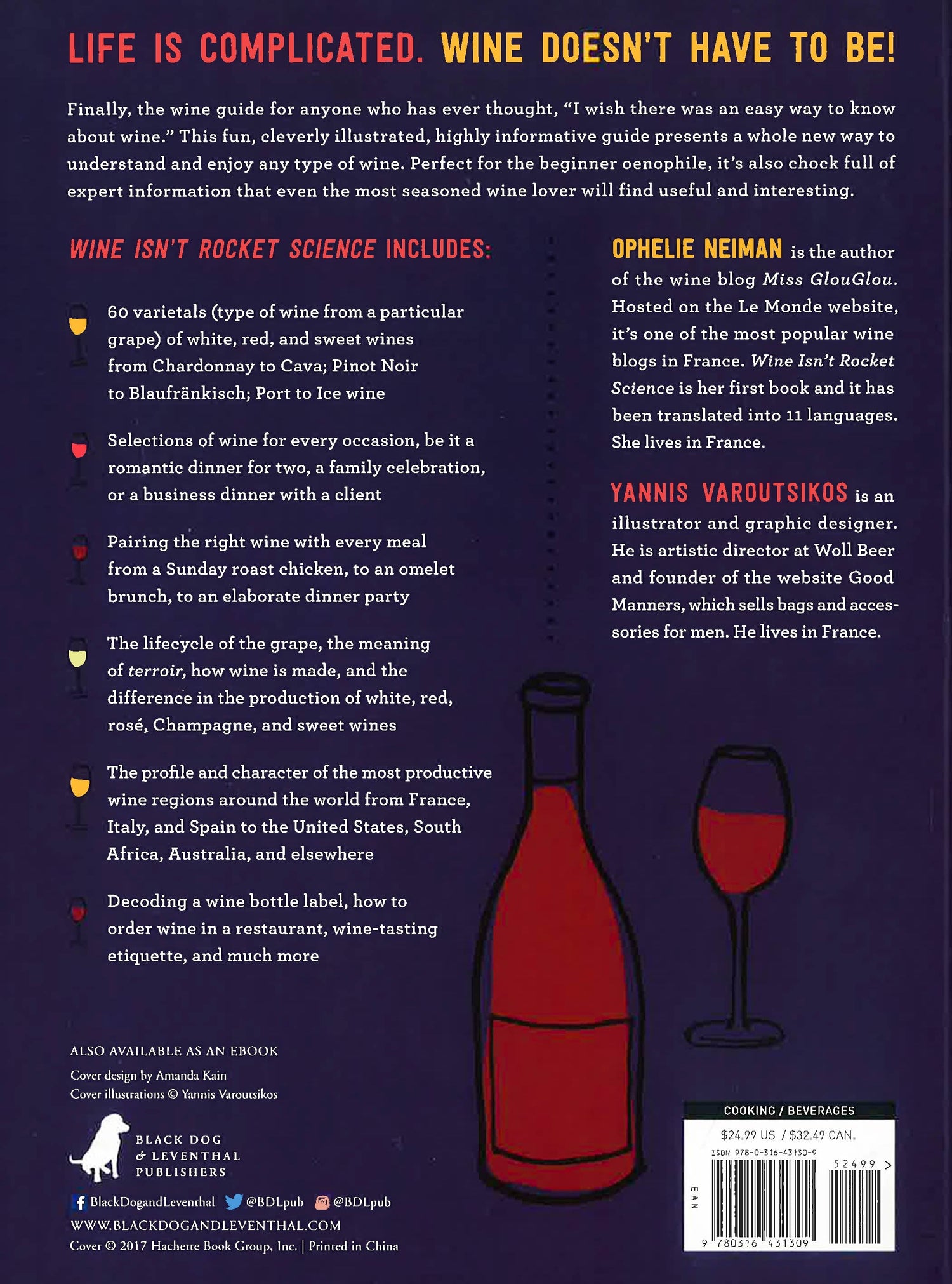 Rocket science is complicated, wine doesn't have to be! With information presented in an easy, illustrated style, and chock-full of the fool-proof and reliable knowledge of a seasoned oenophile, Wine Isn't Rocket Science is the guide you always wished existed. From how grapes are grown, harvested and turned into wine, to judging the color, aroma, and taste of the world's most popular varietals, to understanding terroir and feeling confident ordering and serving wine at any occasion, this book explains it all in the simplest possible way. Every page, every piece of information, and every detail is illustrated in charming and informative four-color drawings that explain concepts at a glance. Includes detailed information on the following varietals (wine made from a particular grape) in the order in which they're presented in the book: White Chardonnay Sauvignon Blanc Chenin Gew?rztraminer Viognier Semillon Riesling Marsanne Blend Rolle-Vermentino Muscat Pinot Grigio/Gris Pinot Blanc Muscadet Soave Albarino Torrontes Gruner Veltliner Assyrtiko Champagne Cava Prosecco Red Pinot Noir Cabernet-Sauvignon Merlot Cabernet-Franc Malbec Petit Verdot Bordeaux Blend Syrah Grenache Mourvedre Carignan Rhone/GSM Blend Gamay Nebbiolo Sangiovese Barbera Valpolicella Blend Aglianico Montepulciano Nero D'Avola Negroamaro Zinfandel Petit Sirah Carmenere Tempranillo Mencia Touriga Nacional Pinotage Blaufrankisch Lambrusco Rose Dessert Port Sherry Marsala Madeira Vin Santo Sauternes Tokaji Ice Wine