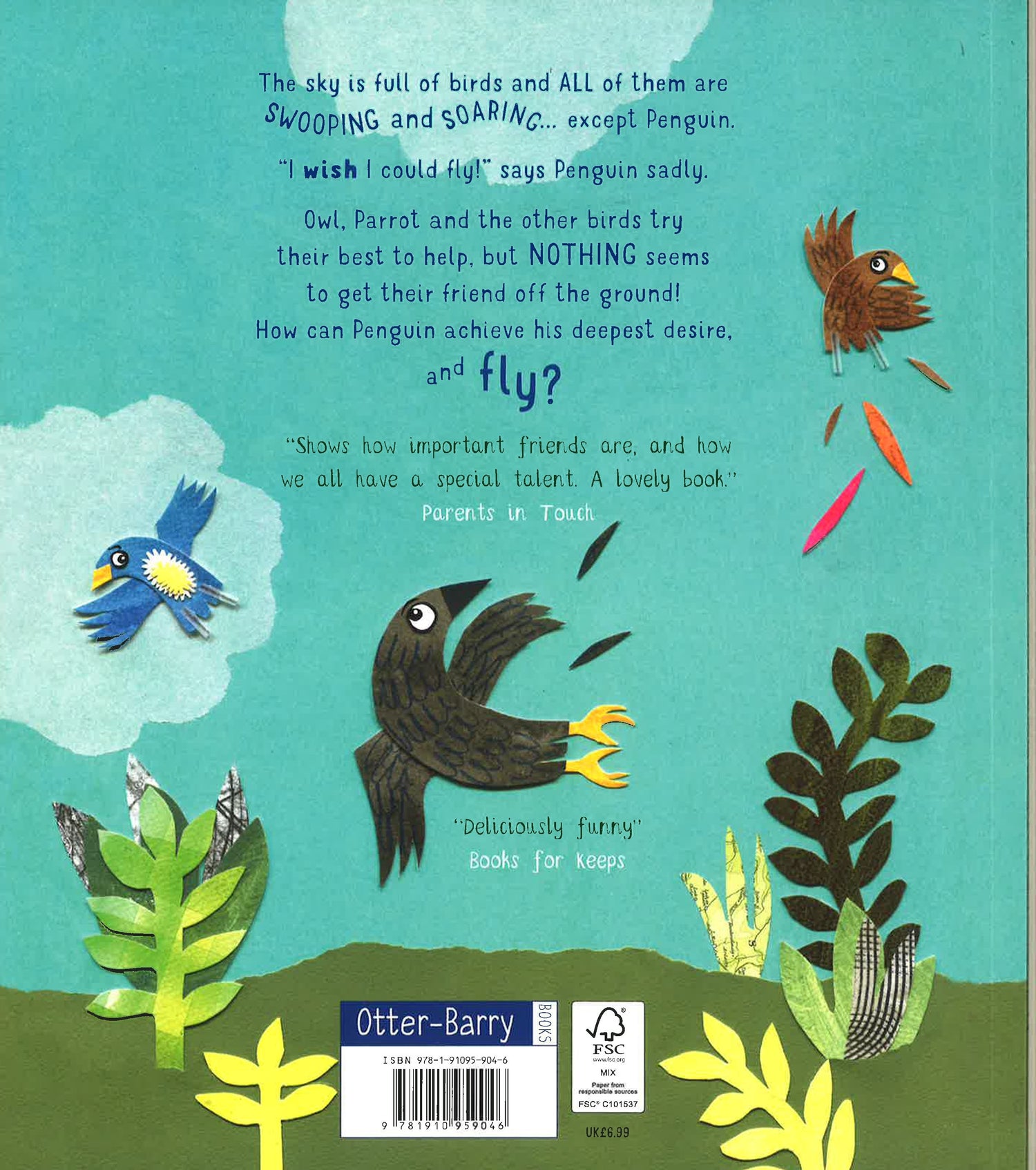 Owl, Parrot and the other birds try their best to help, but NOTHING seems to get their friend off the ground! How can Penguin achieve his deepest desire, and fly?