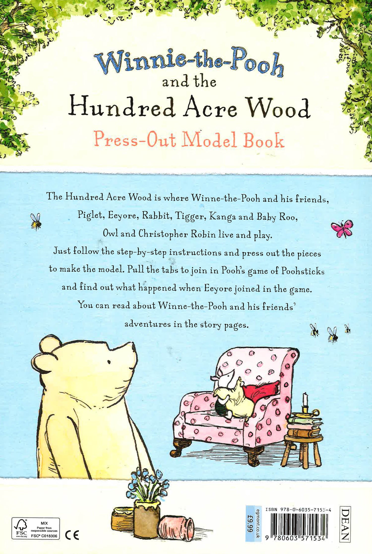 The Hundred Acre Wood is where Winnie-the-Pooh and his friends, Piglet, Eeyore, Rabbit, Tigger, Kanga and Baby Roo, Owl and Christopher Robin live and play.Just follow the step-by-step instructions and press out the pieces to make the model. Pull the tabs to join in Pooh's game of Poohsticks and find out what happened when Eeyore joined in the game.You can read about Winnie-the-Pooh and his friends adventures in the story pages.