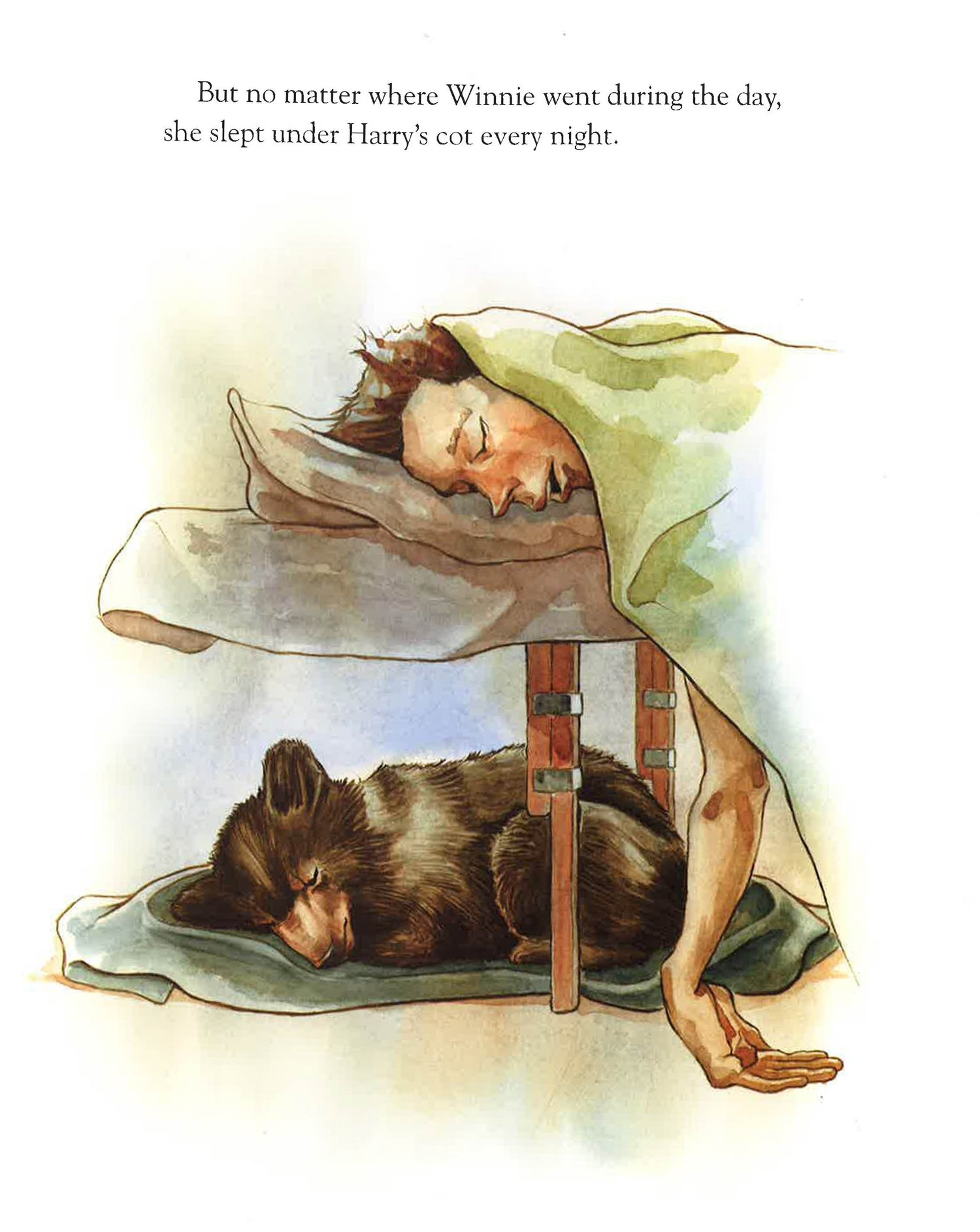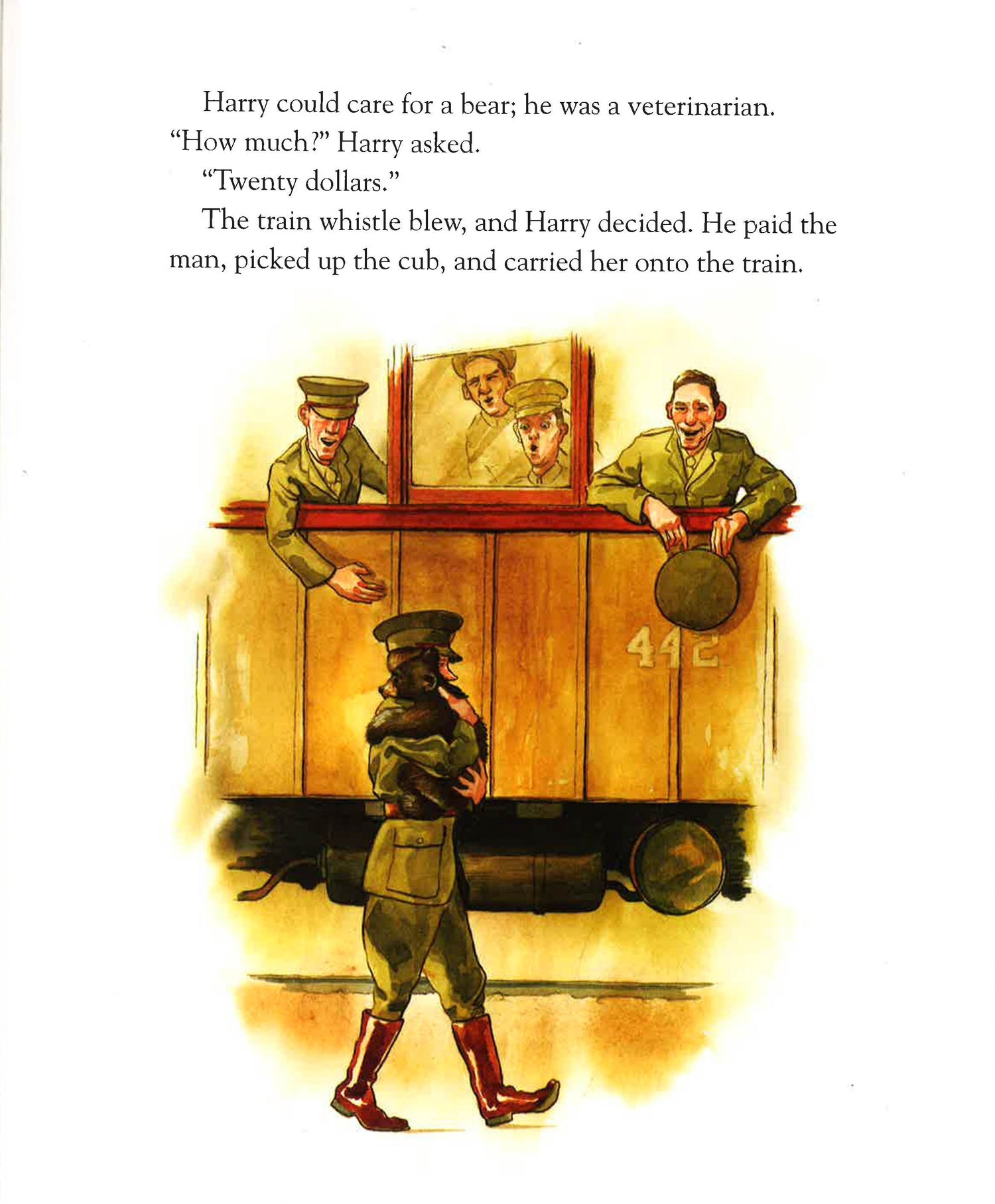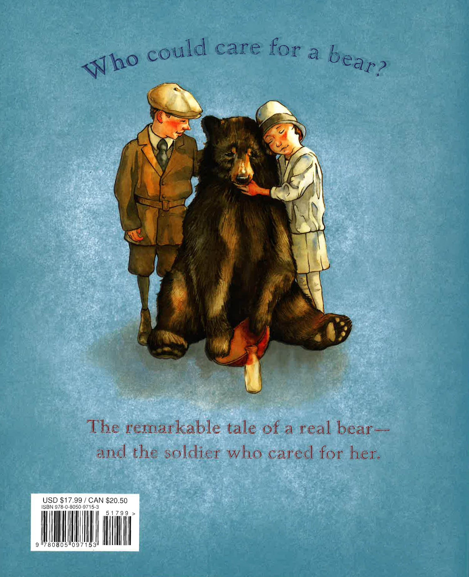 Who could care for a bear? When Harry Colebourn saw a baby bear at a train station, he knew he could care for it. Harry was a veterinarian. But he was also a soldier in training during World War I. Harry named the bear Winnie, short for Winnipeg, his company's home town, and he brought her along to the military camp in England. Winnie followed Harry everywhere and slept under his cot every night. Before long, she became the regiment's much-loved mascot. But who could care for the bear when Harry went to battle? Harry found just the right place for Winnie-the London Zoo. There a boy named Christopher Robin played with Winnie-he could care for this bear too!