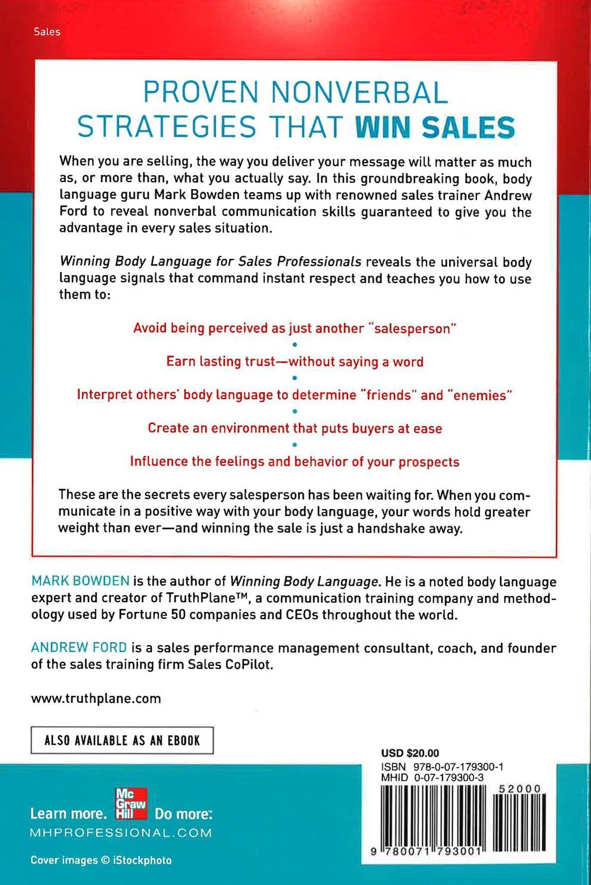 When you are selling, the way you deliver your message will matter as much as, or more than, what you actually say. In this groundbreaking book, body language guru Mark Bowden teams up with renowned sales trainer Andrew Ford to reveal nonverbal communication skills guaranteed to give you the advantage in every sales situation.
