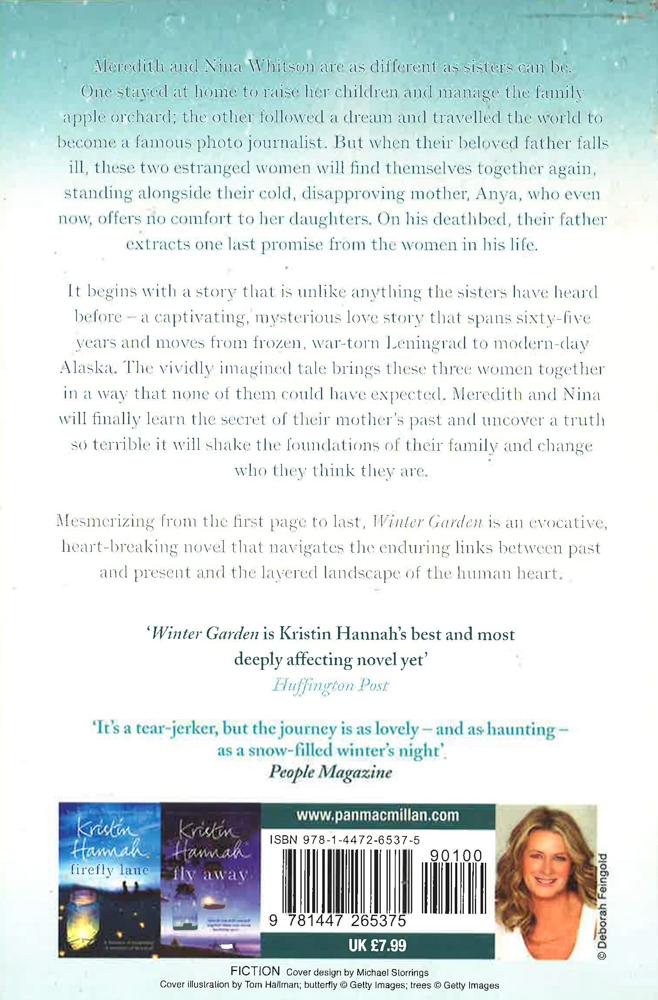 Sometimes when you open the door to your mother's past, you find your own future ...Meredith and Nina Whitson are as different as sisters can be. One stayed at home to raise her children and manage the family apple orchard; the other followed a dream and travelled the world to become a famous photo journalist. But when their beloved father falls ill, these two estranged women will find themselves together again, standing alongside their cold, disapproving mother, Anya, who even now, offers no comfort to her daughters. On his deathbed, their father extracts one last promise from the women in his life. It begins with a story that is unlike anything the sisters have heard before - a captivating, mysterious love story that spans sixty-five years and moves from frozen, war torn Leningrad to modern-day Alaska. The vividly imagined tale brings these three women together in a way that none could have expected. Meredith and Nina will finally learn the secret of their mother's past and uncover a truth so terrible it will shake the foundation of their family and change who they think they are. Every once in a while a writer comes along who navigates the complex and layered landscape of the human heart. For this generation, it's Kristin Hannah. Mesmerizing from the first page to the last, Winter Garden is an evocative, lyrically written novel that will long be remembered.
