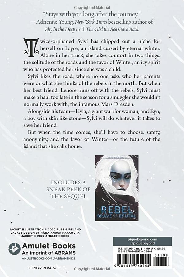 Mad Max: Fury Road meets Frozen in this striking YA fantasy about a rig driver’s journey to save her friend―now in paperback Twice-orphaned Sylvi has chipped out a niche for herself on Layce, an island cursed by eternal winter. Alone in her rig, she trucks over the frozen mountains and perilous icy passes that the boldest men fear to cross, and she takes comfort from two things: the safety that solitude offers and the favor of Winter. Sylvi likes the road, where no one asks who her parents were, or what she thinks of the rumors of rebels in the north, or what she wants from her life. But when her best friend, Lenore, runs off with the rebels, Sylvi finds herself making a haul too late in the season for a smuggler who she never would’ve done business with under normal circumstances―the infamous Mars Desden. Alongside Desden's team―Hyla, a giant warrior woman, and Kyn, a boy with skin like stone―Sylvi will do whatever it takes to save her friend. But when the time comes, Sylvi will have to choose: safety, anonymity, and the favor of Winter―or the future of the island that she calls home?