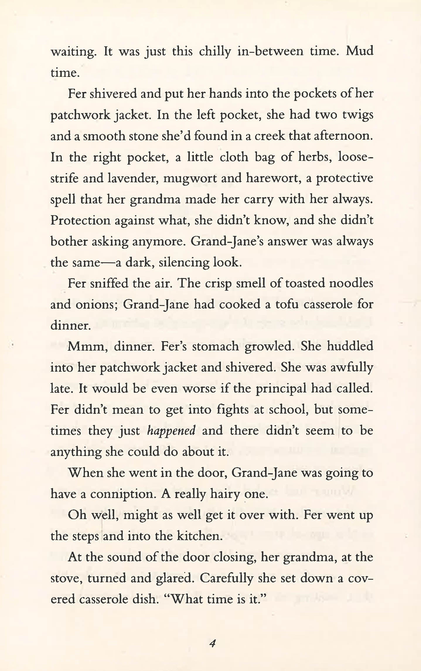 Fer has always felt that she doesn't belong. She hears the call of the wild wood, the secrets it whispers. When her grandmother reveals clues about the disappearance of her father and his mystical bond to her mother, Fer begins to unlock secrets about the parents she never knew. Led to a reflecting pool which uncovers The Way, Fer finds an enchanting and dangerous land.
