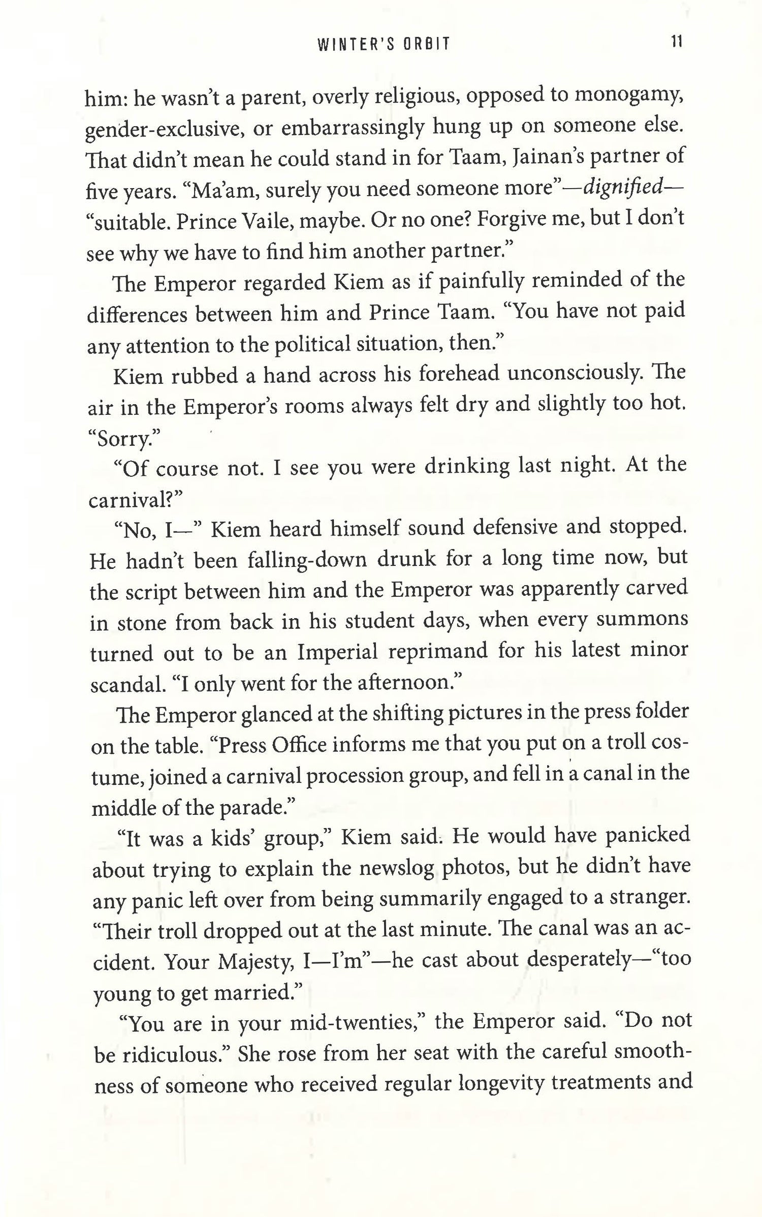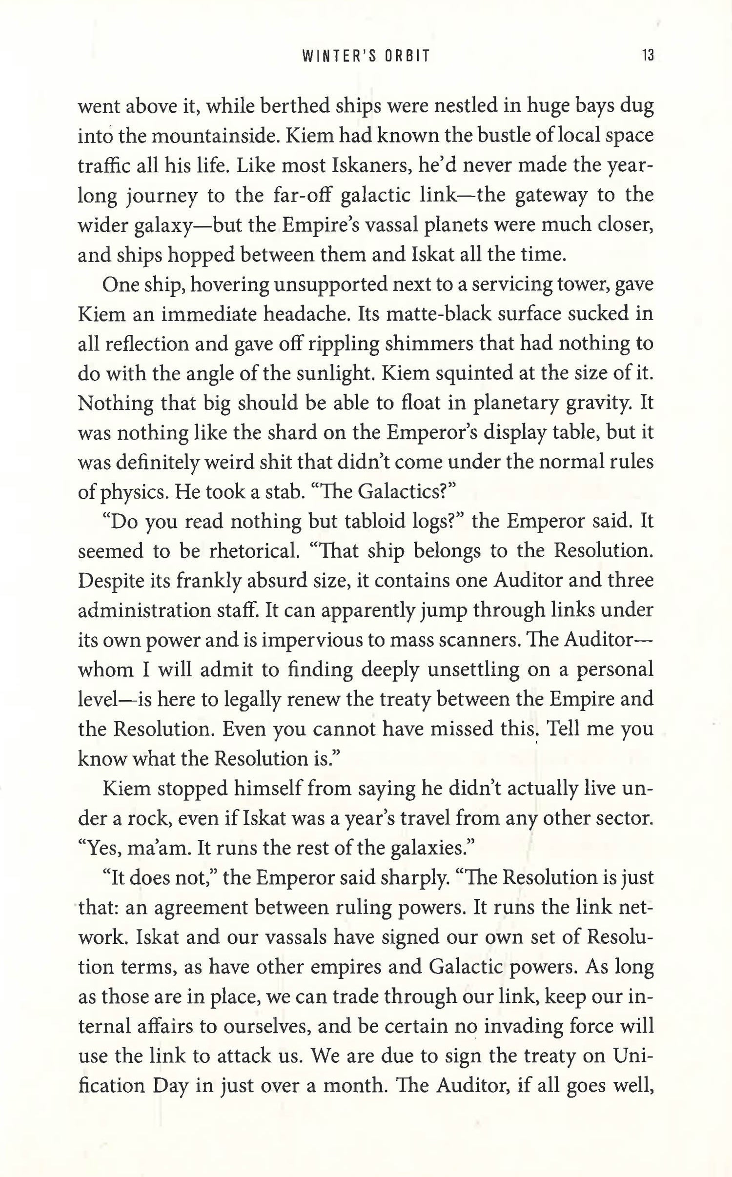 Like Ancillary Justice meets Red, White and Royal Blue, Winter's Orbit is perfect for fans of Lois McMaster Bujold.