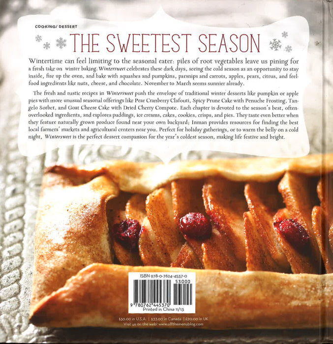 Who says the winter months have to be bleak and barren? Author Tammy Donroe sees this season as an opportunity to stay inside, fire up the oven, and produce decadent desserts from the bounty of wholesome winter ingredients. Wintersweet encourages readers to make use of fresh, local ingredients for warming seasonal desserts. While summer farmers' markets are always overflowing with ripe produce, there's plenty to be had from November to March: squashes and pumpkins, parsnips and carrots, apples, pears, citrus of all types, and feel-good ingredients like nuts, cheese, and chocolate.The fresh and rustic recipes in Wintersweet push the envelope of traditional winter desserts like pumpkin or apple pies with such delicacies as Pear Cranberry Clafouti, Spicy Prune Cake with Penuche Frosting, Tangelo Sorbet, and Goat Cheese Cake with Dried Cherry Compote. Each chapter is devoted to different ingredients, ranging from Persimmons, Pomegranates, and Cranberries to Citrus, Cheese, and Dried Fruits, allowing readers to experiment with new and exciting ingredients for complex and delicious flavors. They taste even better when they can be found near your own backyard Donroe provides resources for finding the best local farmers' markets and agricultural centres near you. Perfect for holiday gatherings or to warm the belly on a cold night, Wintersweet is the perfect dessert companion to make the year's coldest season a bit more festive.