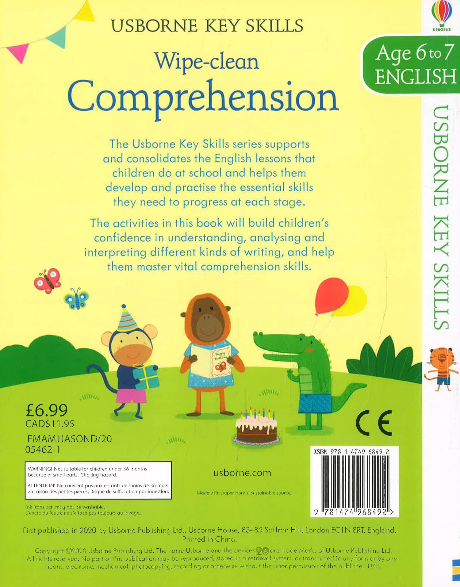 This friendly wipe-clean book is filled with comprehension-based activities that allow children to practise understanding, analysing and interpreting different kinds of writing. Part of the Usborne Key Skills series that supports the English lessons children learn at school. The wipe-clean pages offer endless practice, and answers and secret notes for grown-ups are at the back.