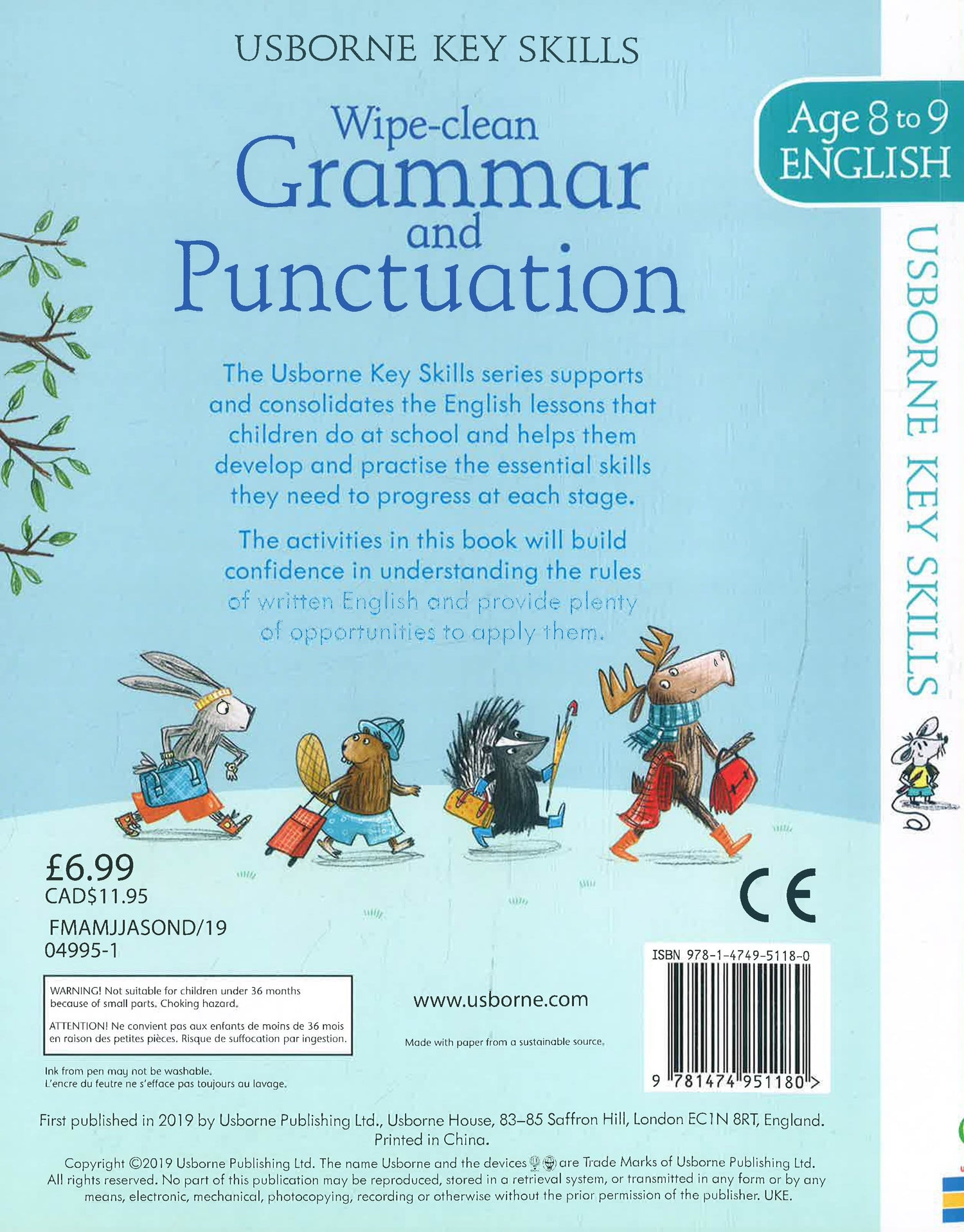 Part of the Usborne Key Skills series that supports the English lessons children learn at school, this book is filled with grammar and punctuation activities that help children create noun phrases, use pronouns and adverbials and write paragraphs. Wipe-clean pages offer endless practice, and answers and secret notes for grown-ups are at the back.