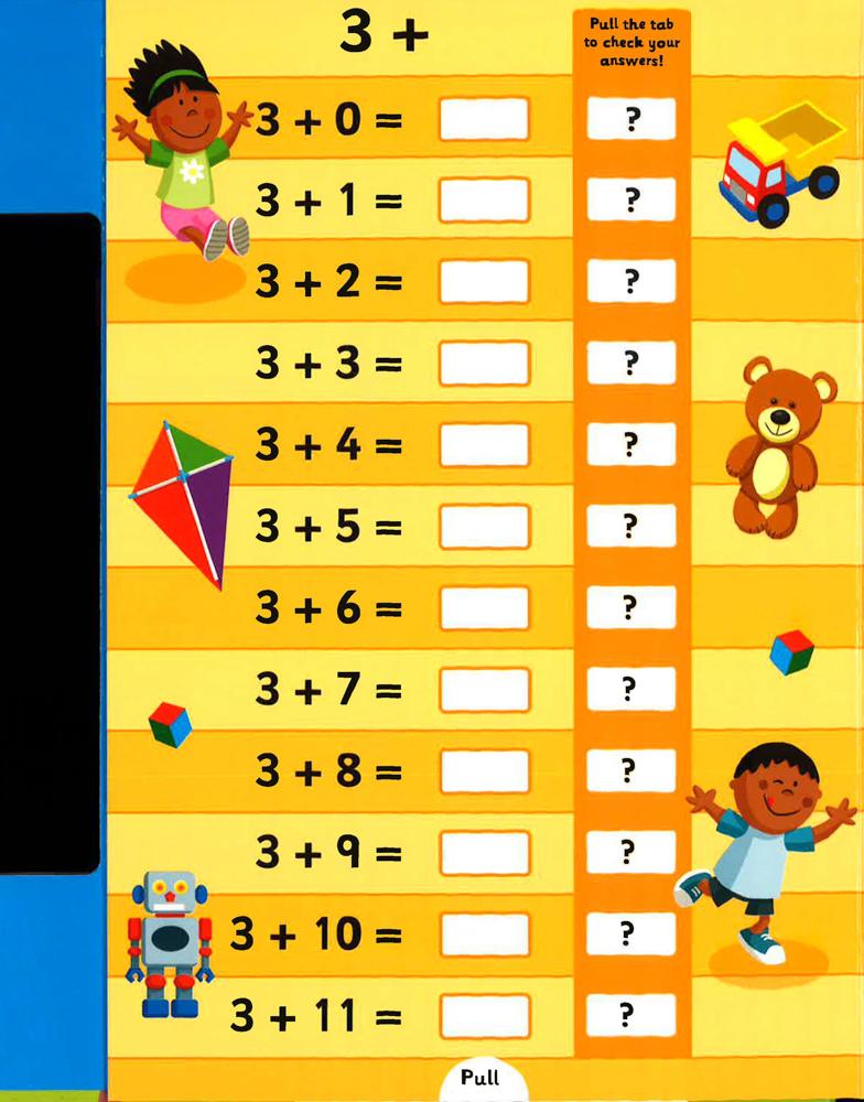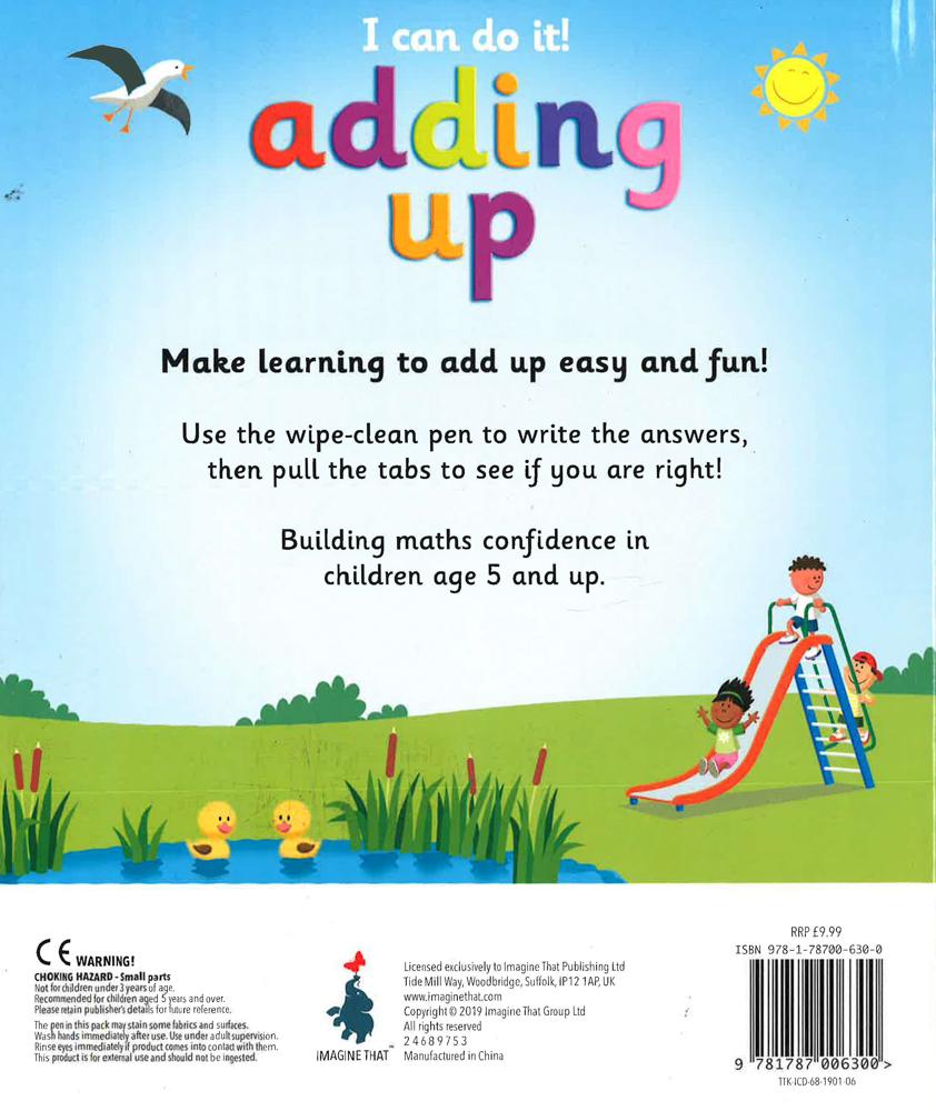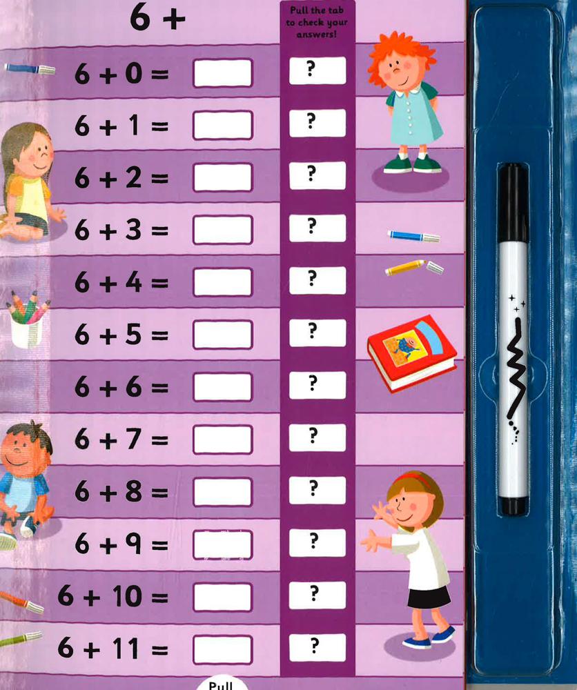 Make learning to add up easy and fun! Use the wipe-clean pen to write the answers, then pull the tabs to see if you are right! Buildingmath confidence in children age 5 and up.