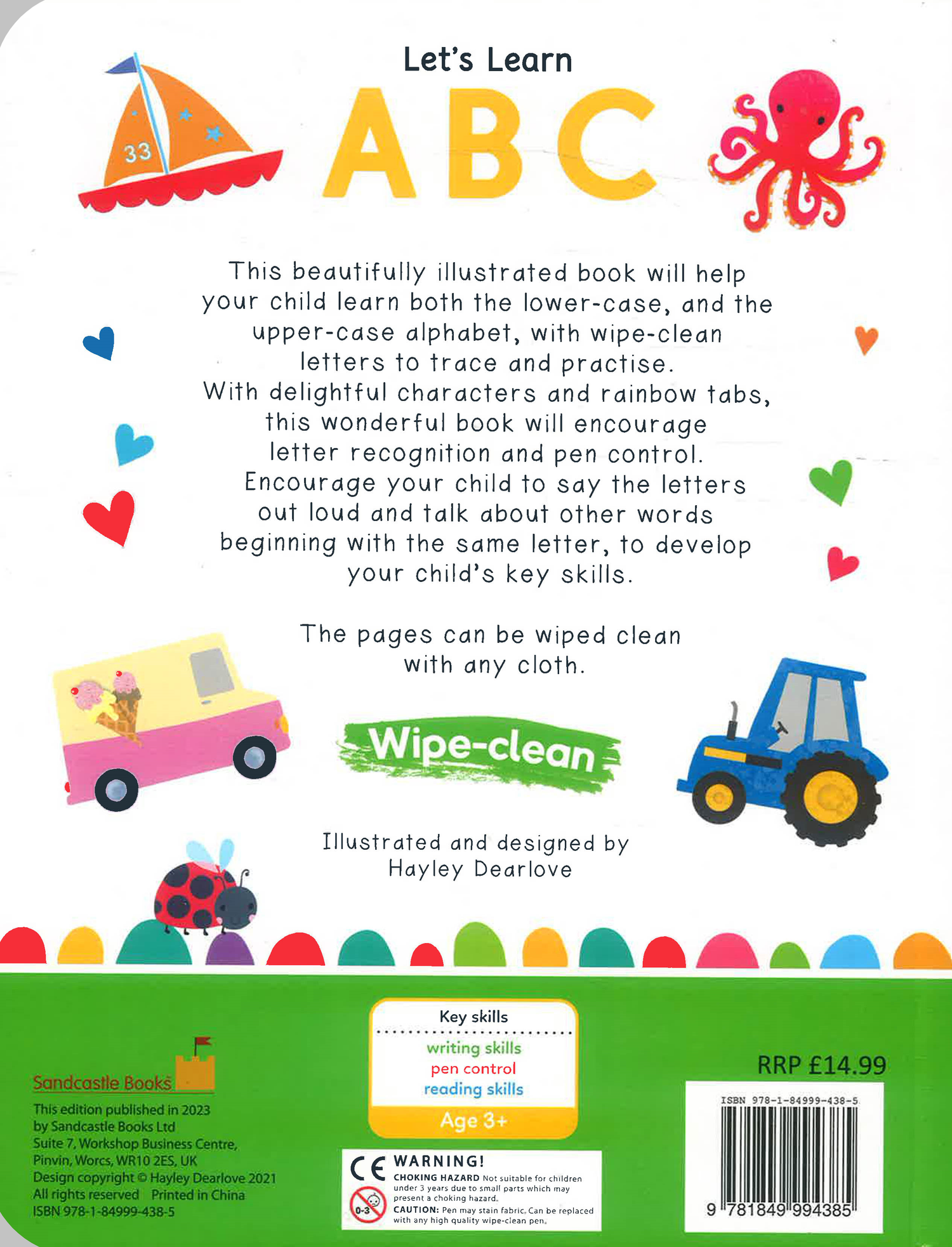 The Wipe Clean book will give children confidence in writing and linking objects to words. Skills are reinforced every time a child repeats an activity. The pages can be wiped clean with any cloth.