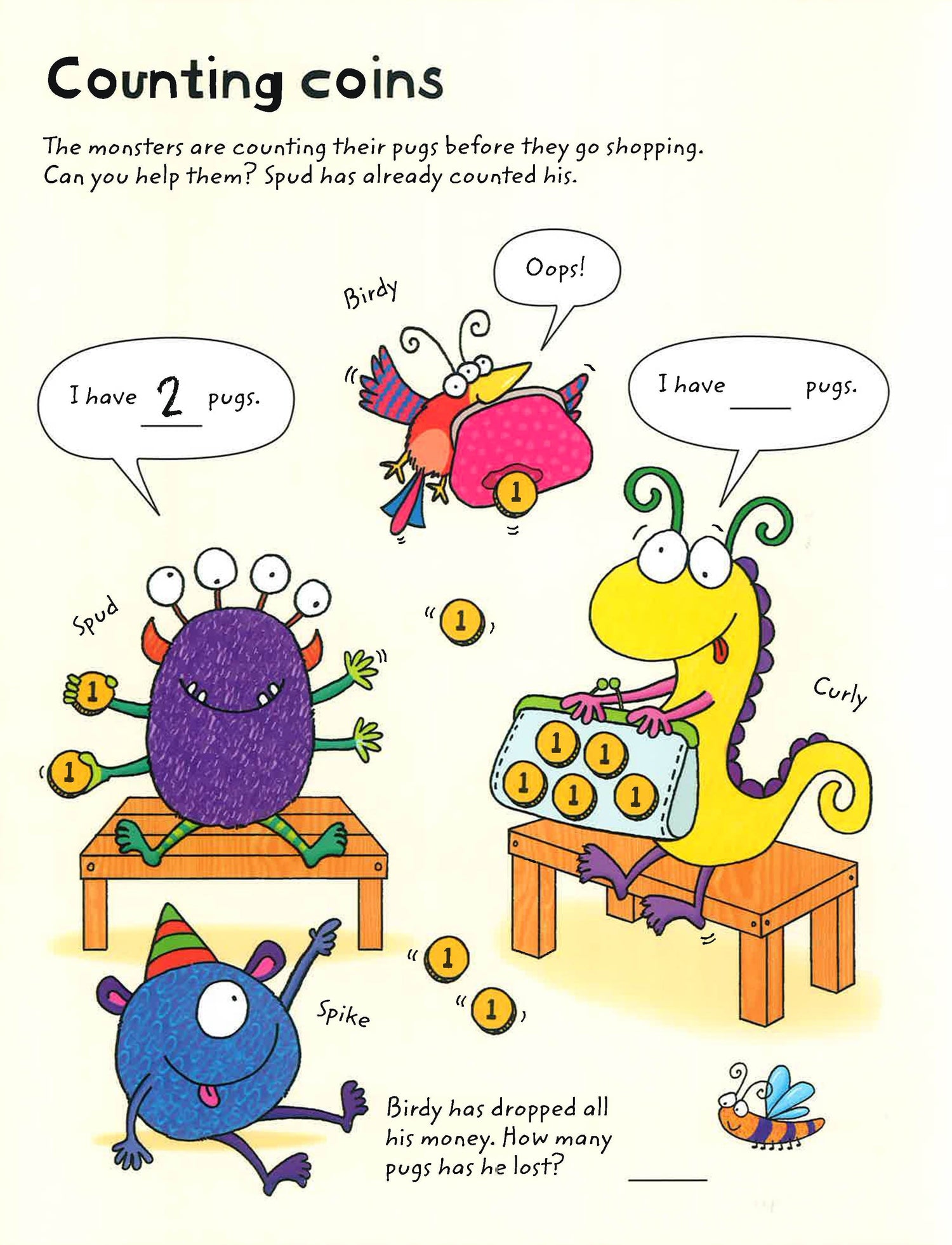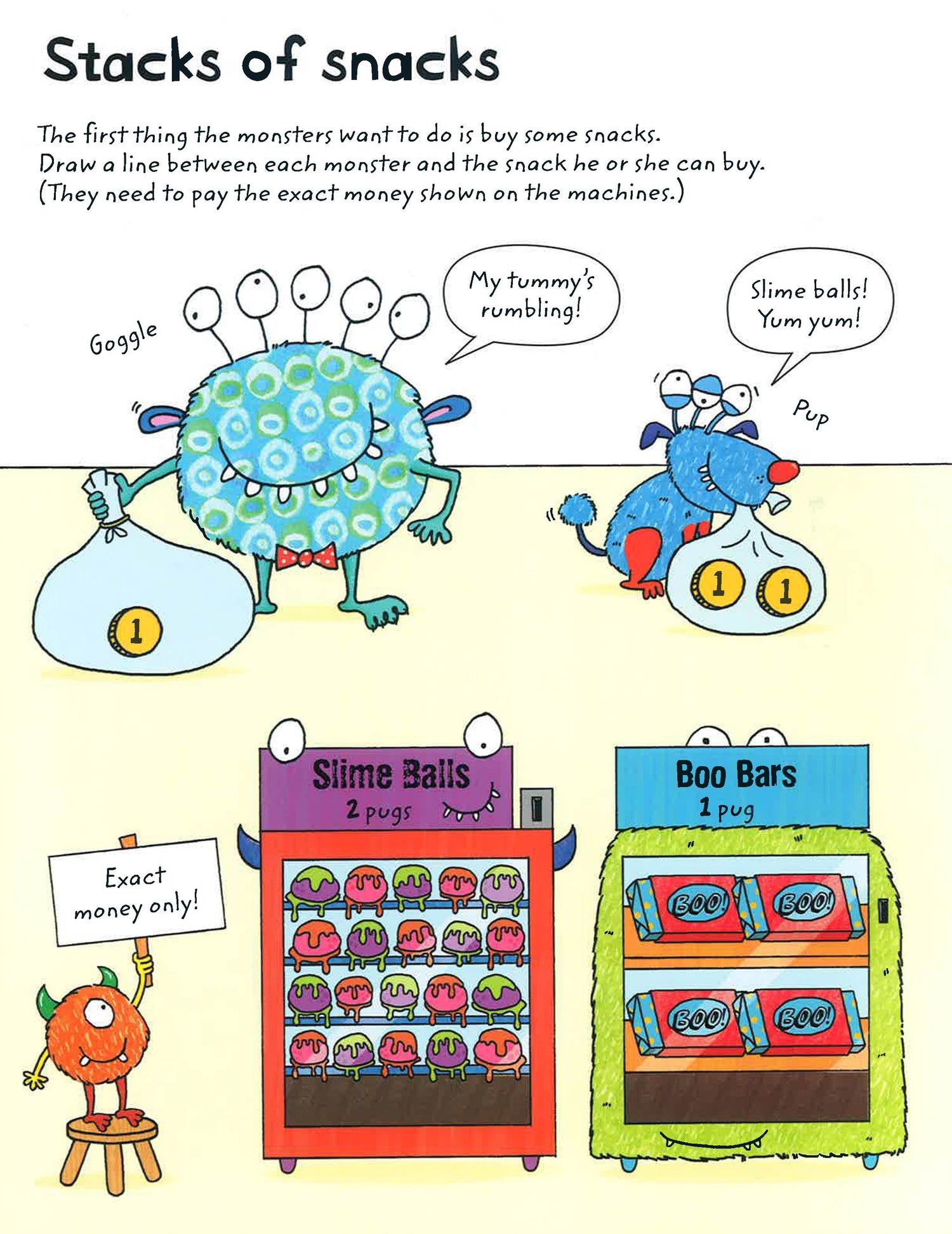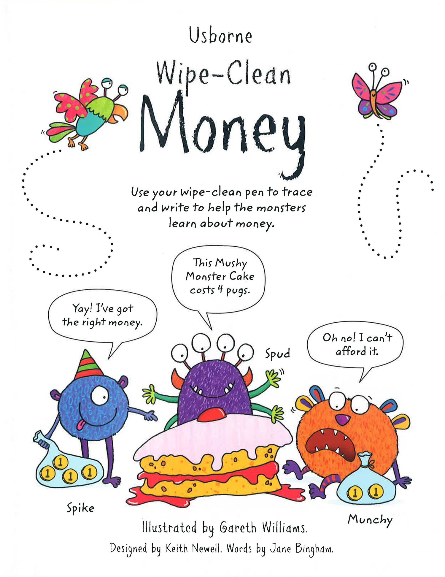 This colourful activity book is a perfect way for young children to start learning about money. Join the friendly monsters and complete a variety of fun activities, including coin counting, buying snacks, visiting the monster market and more. Great for developing pen control, and the pages are wipe-clean so children can practise again and again.