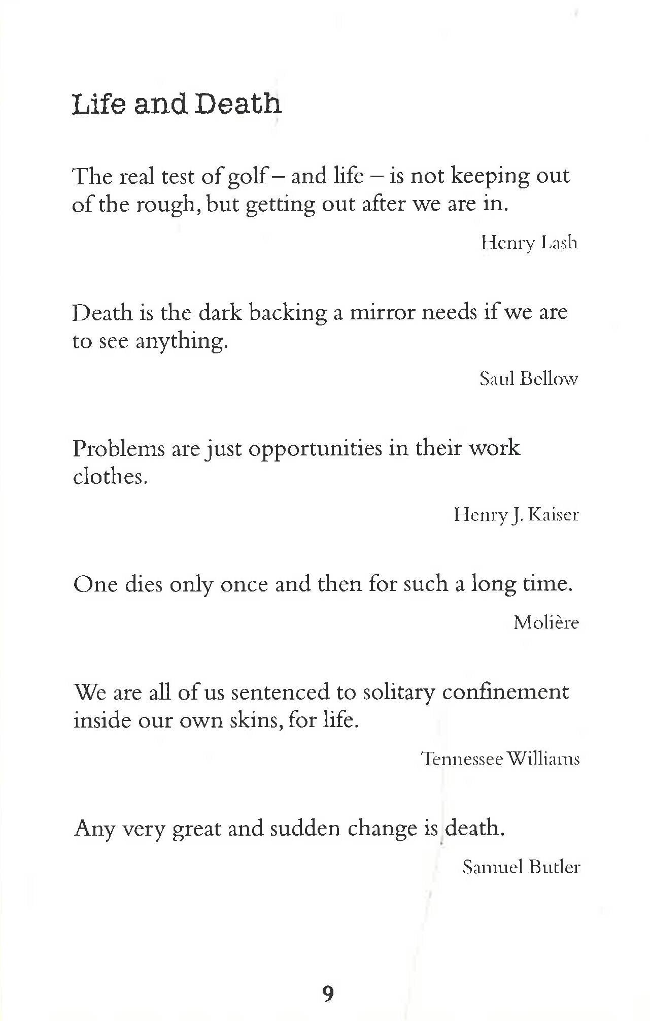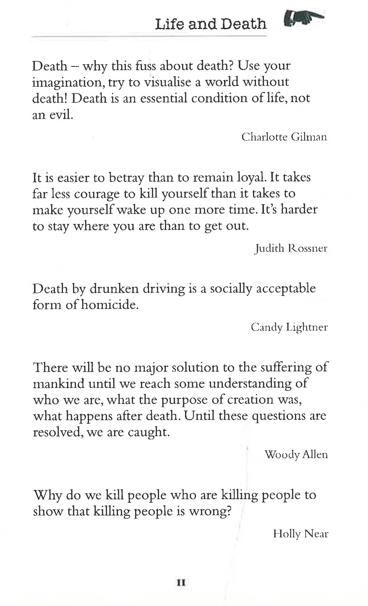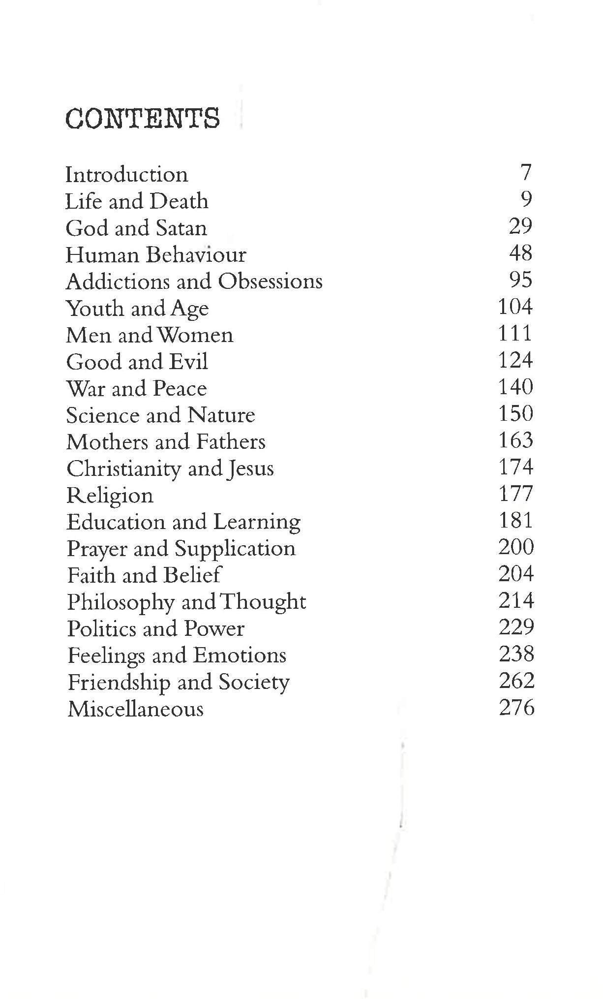 The author of the "Wit" books presents a compilation of quotations covering all the big questions of life: love and happiness, politics and religion, good and evil. From the likes of Mark Twain, Benjamin Franklin and Evelyn Waugh, read words of wisdom as spoken by some of the world's most celebrated thinkers. Thought-provoking, inspiring and witty, this collection makes a guide to life.
