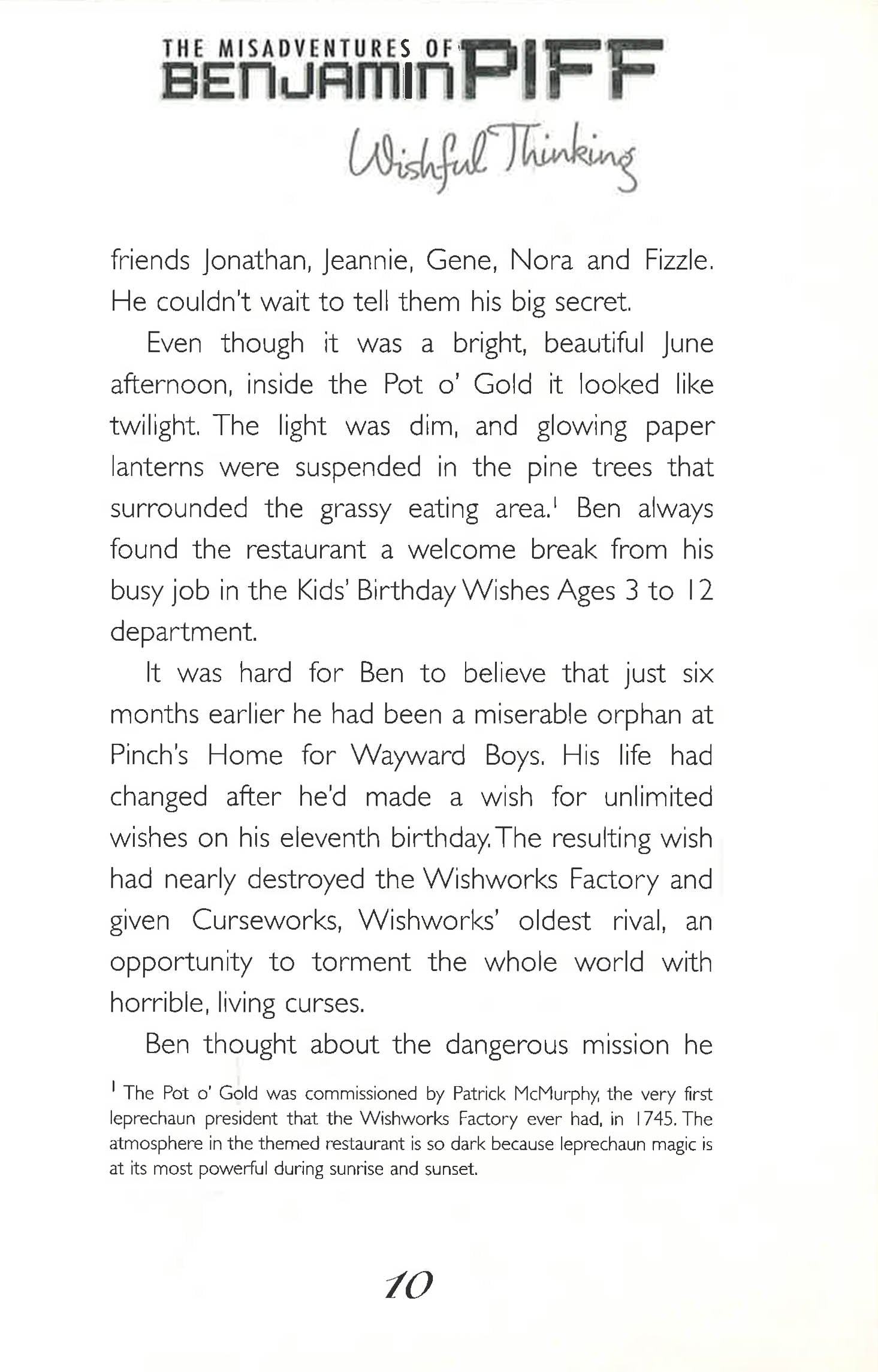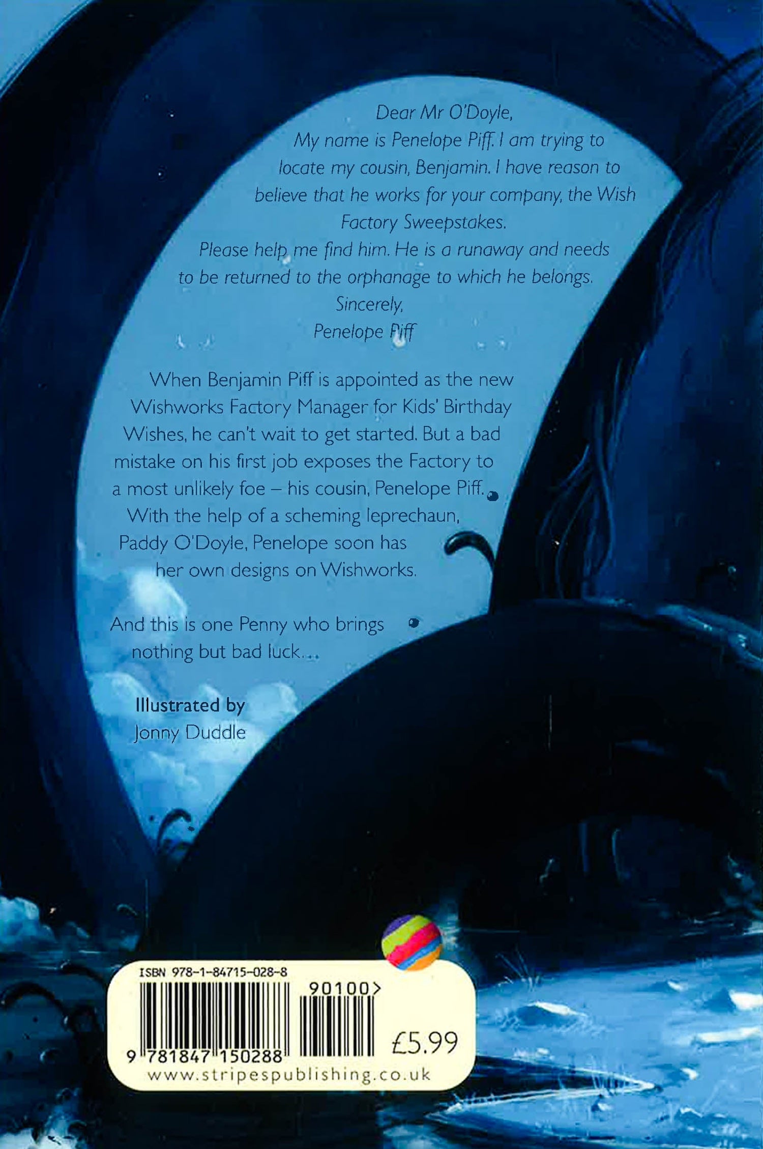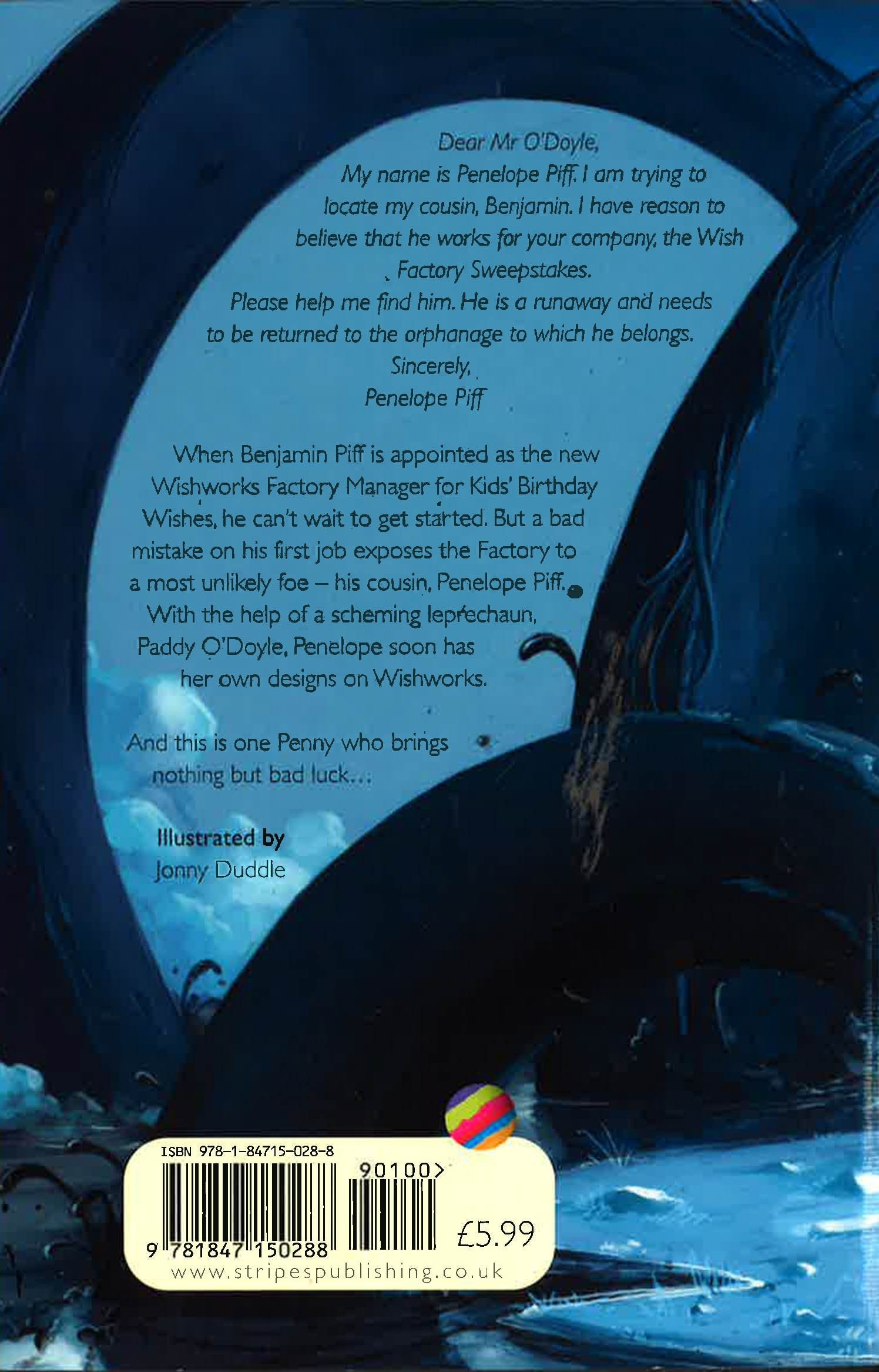 Eleven-year-old Ben has joined the staff at the Wishworks Factory as Manager, Kids' Birthday Wishes. But a stupid mistake on his first job puts the Factory in danger from a very unlikely foe - his long lost cousin, Penelope Piff. Teaming up with Thornblood, the Curseworks' President, Penelope has her sights set on the magical Wishworks Factory...and this is one 'penny' who brings nothing but bad luck...