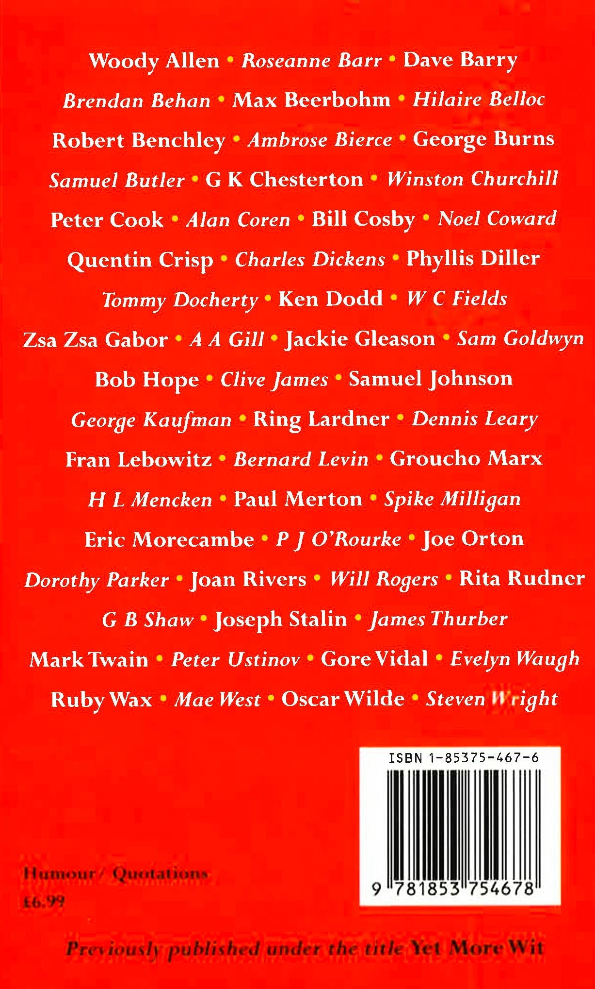 This was the third volume in Des MacHale's best-selling Wit series, the best collection of witty remarks ever published. This volume was previously published as Yet More Wit but under that title it languished; it looked like an also ran, yet it was every bit as good as the original Wit. It joins Wit, Wit - the Last Laugh and Wit Rides Again in this magnificent compendium of short, sharp quips. The wonderful Des MacHale, Mathematics Professor at University College, Cork, and lifetime collector of funny remarks and devastating repartee, is the star performer at humour conferences round the world, and is the author of a multitude of books. The volume is organised by theme, so all the quotations on medicine and doctors, for example, are together, as are quotes relating to media and films, sports, politics, love and marriage, sex, food, education and many other subjects. As well as brilliant quotes from classic humorists such as Oscar Wilde and Woody Allen, we have Noel Coward, Winston Churchill, Lenny Bruce, Rita Rudner, Groucho Marx, WC Fields, Spike Milligan etc, etc. "Marriage - "I was married by a judge, but should have asked for a jury."