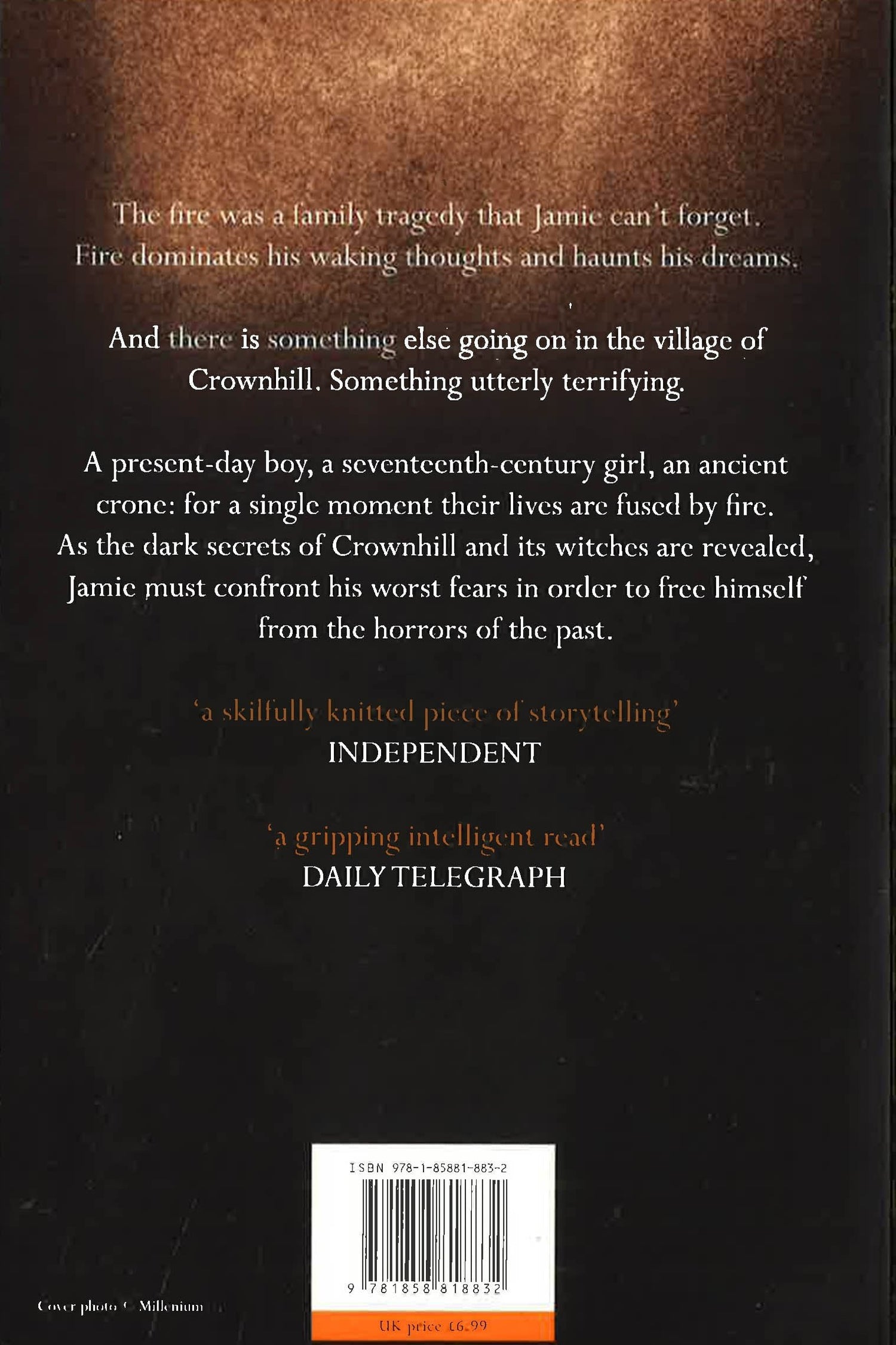 The fire was a family tragedy that Jamie can't forget, even in his dreams. And now there is something terrifying happening to him in Crownhill, the village where he's been sent to get over his problems. Something to do with an evil old witch who gets into his nightmares, and a frightened girl, the victim of a long-ago witch hunt, whose presence lingers on. A present-day boy, a seventeenth-century girl, an ancient crone: for a single moment their lives are fused by fire. And as the dark secrets of Crownhill are revealed Jamie has to confront his worst fears in order to free himself from the horrors of the past.