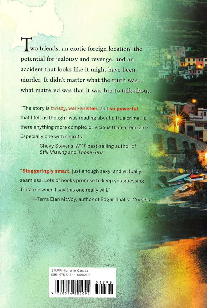 For fans of We Were Liars and The Girl on the Train comes a chilling, addictive psychological thriller about a teenage girl who cannot remember the last six weeks of her life. Eighteen-year-old Jill Charron's senior trip to Italy was supposed to be the adventure of a lifetime. And then the accident happened. Waking up in a hospital room, her leg in a cast, stitches in her face, and a big blank canvas where the last 6 weeks should be, Jill comes to discover she was involved in a fatal accident in her travels abroad. She was jetted home by her affluent father in order to receive quality care. Care that includes a lawyer. And a press team. Because maybe the accident...wasn't an accident. Wondering not just what happened but what she did, Jill tries to piece together the events of the past six weeks before she loses her thin hold on her once-perfect life.