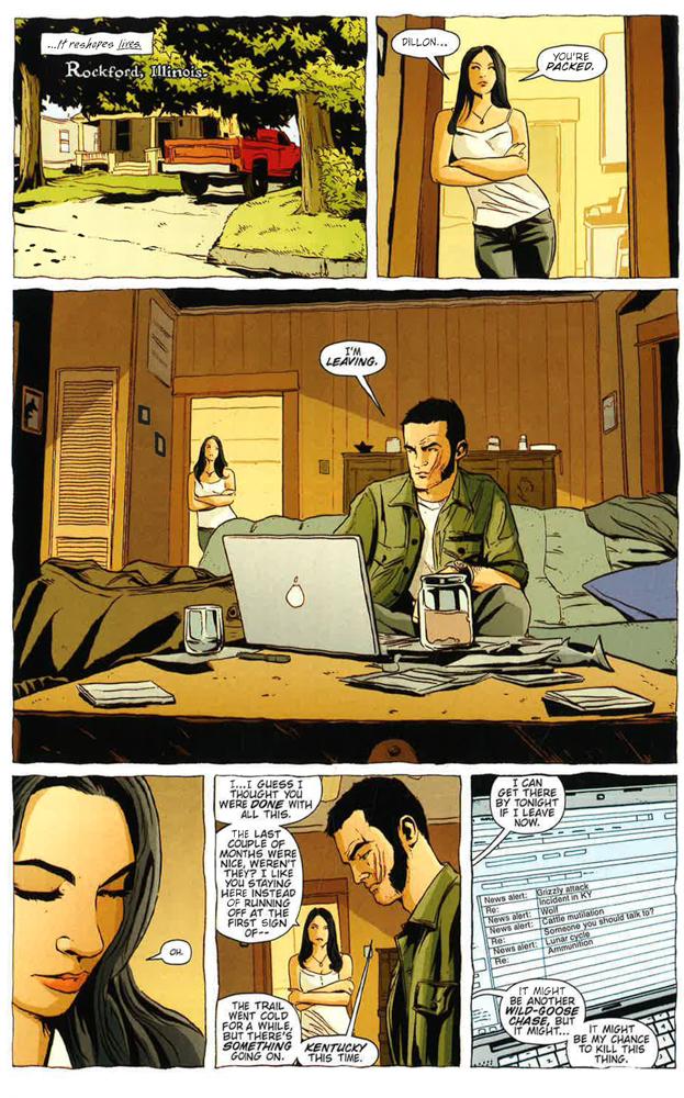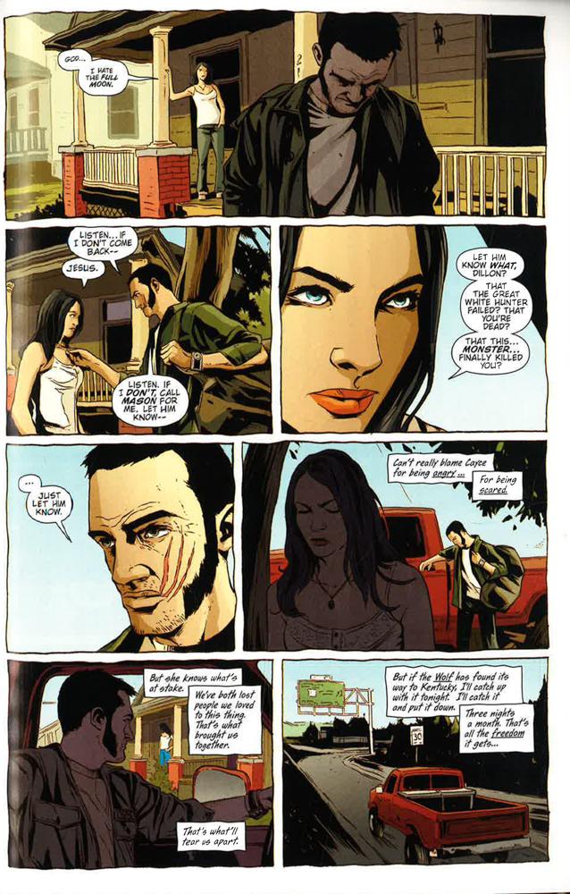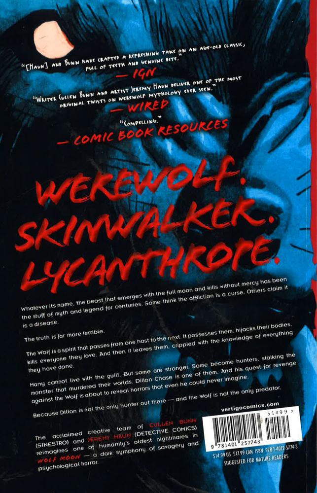 A new brand of Werewolf carves a bloody rampage into this collection of WOLF MOON! How do you hunt a werewolf if a different person becomes the monster with every cycle of the moon? Dillon, a former victim of the Wolf's transformation, is taking it upon himself to track the sporatic movements of the Wolf in hopes to kill it. Hoping to uncover some clues, Dillon turns to a reclusive expert on werewolf legends, and what he learns crushes any hope of ever destroying the creature. Collects WOLF MOON #1-6.