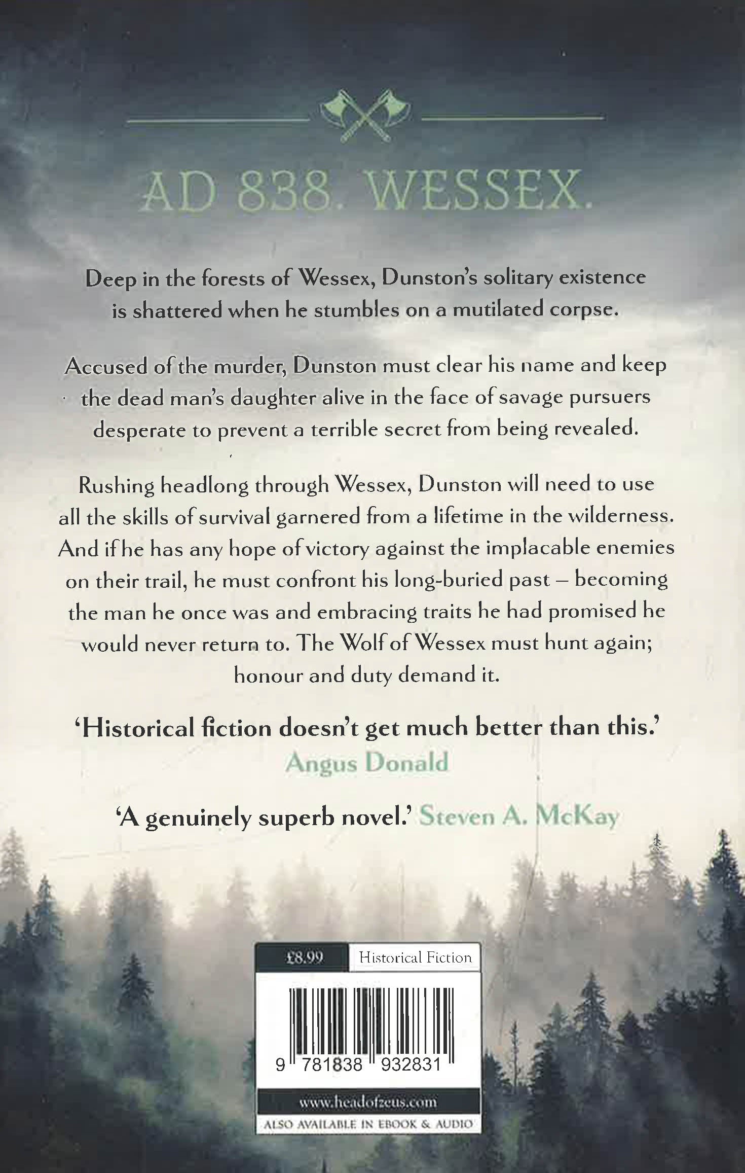 Rushing headlong through Wessex, Dunston will need to use all the skills of survival garnered from a lifetime in the wilderness. And if he has any hope of victory against the implacable enemies on their trail, he must confront his long-buried past – becoming the man he once was and embracing traits he had promised he would never return to. The Wolf of Wessex must hunt again; honour and duty demand it.
